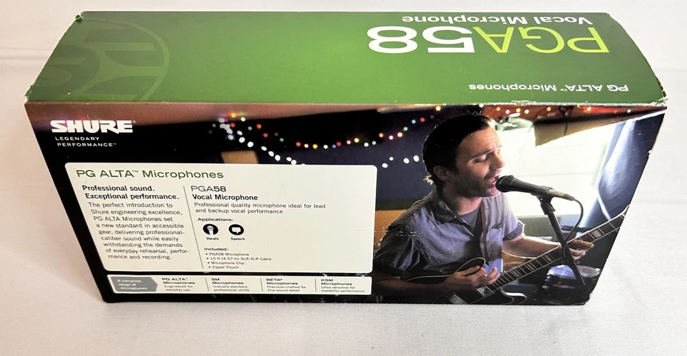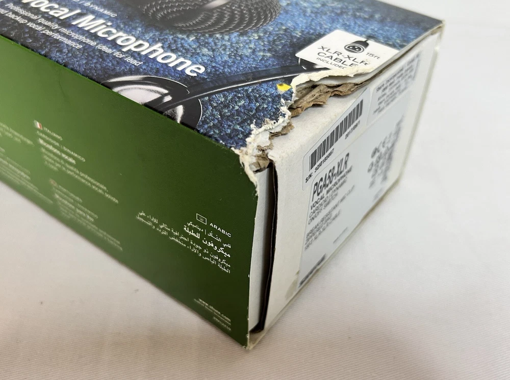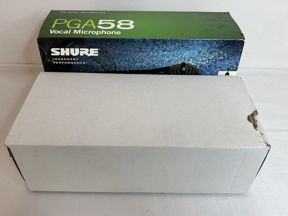 Shure PGA58-XLR Cardioid Dynamic Handheld Vocal Microphone with XLR 15 ft. Mic Cable. Break resistant Mike clip. Zippered bag. Shure sticker. Vocal microphone, professional quality, microphone, ideal for lead and backup vocal performance. Open Box. Box has corner damage as seen in photos. Photos are part of description. We make an effort to supply plenty of photos to assist in your buying decision. Lighting can impact appearance of colors. Seller welcomes communication and questions from potential Buyers. We operate under The Golden Rule....Do Unto Others, so please contact us through eBay if we can answer a question, provide more info, resolve an issue or improve your experience. It is our desire and plan to provide 5 Star service to every customer with fast shipping and accurate descriptions. We appreciate positive feedback. If there is a mistake, please allow us an opportunity to correct it before opening a ticket with eBay or leaving negative feedback. RETURNS: We offer a generous 30 Day return policy for items not as described or non-working unless otherwise described in listing so you can shop with confidence. We package carefully, so if an item is damaged during delivery, buyer will need to file a claim with carrier. Returns must be authorized and returned with all the same packaging and box. Seller paid shipping for authorized domestic returns. Customer to pay return shipping for any authorized returns from international locations, Hawaii, Alaska, Guam, Canada. SHIPPING: Shipping supplies have increased in cost. We try to obtain the lowest cost on supplies to keep shipping as reasonable as possible. There are many factors that affect shipping costs. When possible we try to upgrade shipping to Priority by using their supplies, facilitate faster shipping and insure package, especially for fragile items. We are happy to combine shipping with items purchased & paid the same day. Orders are always shipped out within one business day unless we are on published time away. Many times shipping will occur same day. Note: Due to attempted fraud, purchases made from Buyers with new accounts and/or no feedback may be cancelled and not shipped. We do not communicate outside of the eBay platform. International & Non Domestic Buyers: shipping will be handled through the eBay Global Shipping Program. Import duties, taxes, and charges are not included in the item price or shipping cost. These charges are the buyer's responsibility. Please check with your country's custom's office to determine what these additional costs will be prior to bidding or buying. We do not ship to P.O. Boxes. The Stanley Co will make every effort to make you a happy customer! Thanks for shopping with The Stanley Co! SEE ALL OUR EBAY LISTINGS HERE: TheStanleyCo.com
