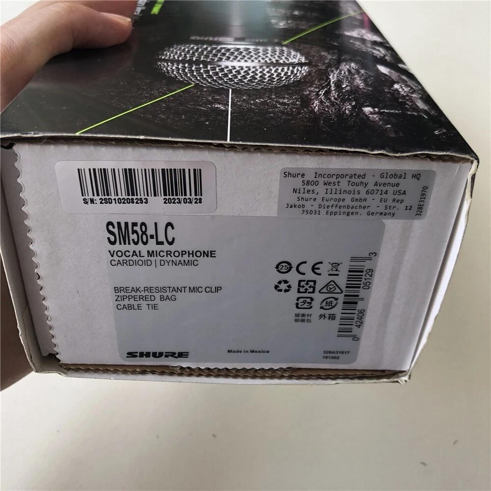 NEW SHURE SM58LC Dynamic Wired XLR Professional Microphone Not many, clearance sale. No ON/OFF switch Cable not included. EXEPTIONAL VOCAL PERFORMANCE - The SM58-LC delivers high-quality vocal reproduction, thanks to its tailored frequency response and brightened midrange for clear and present vocals. INDUSTRY STANDARD - The first choice for performers around the globe, the SM58 Dynamic Vocal Microphone is ready to bring any performance to life. From the club to the stadium, Shure has your back. CLARITY & CARE - The uniform cardioid polar pattern reproduces every note as it was intended, delivering warm, crisp sound time after time. LEAVE BACKGROUND NOISE BEHIND - The SM58 has a spherical mesh grille and built-in pop filter to keep any unwanted noise out of the mix. DROP THE MIC - The durable construction and break-resistant stand adapter makes the SM58 the perfect companion on the road, going strong through the toughest performances. VERSATILE - The SM58 can hold its own live onstage as well as in the studio, isolating between vocals and instruments. WHAT’S IN THE BOX - Shure SM58 Dynamic Vocal Microphone, 1 - A25D Swivel Stand Adapter, 1 - 95A2313 Storage Bag Frequency response tailored for vocals, with brightened midrange and bass rolloff to control proximity effect Effective built-in spherical wind and pop filter. Frequency response: 50 to 15,000 Hz Pneumatic shock-mount system cuts down handling noise Uniform cardioid pickup pattern isolates the main sound source and minimizes background noise BRAND NEW SM58LC Shure Dynamic Wired XLR Professional Microphone If you’ve ever heard someone sing or speak into a live microphone, there’s an excellent chance it was an SM58LC. Rock stars. Pop idols. Comedians. Presidents. Popes. Immortal words have passed through its iconic grille for generations. And with engineering and durability that set the world standard, it’s sure to keep turning up at legendary performances. Made to handle voice with clarity and care, the uniform cardioid polar pattern reproduces every note as it was intended. And it leaves background noise behind. On any stage — from the club show to the stadium — the SM58LC delivers warm, crisp sound, time after time. Handling noise gets absorbed by the pneumatic shock mount, keeping the sound free of vibration.When wind and plosives try to take over, the spherical mesh grille and built-in pop filter keep them out of the mix. Taking the show on tour? The mic’s durable construction and the break-resistant stand adapter keep the SM58LC going strong through the toughest performances.