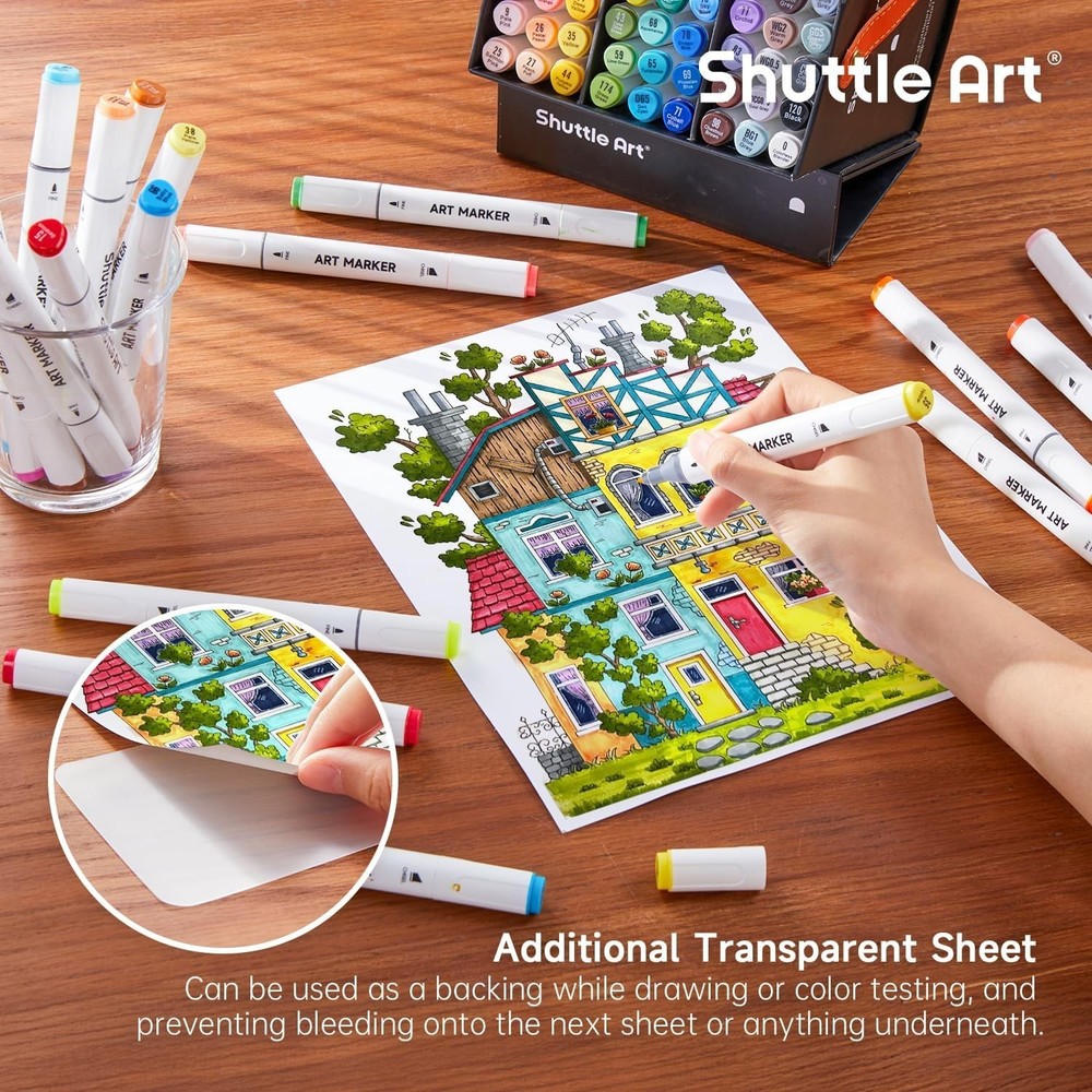 Shuttle Art 51 Colors Alcohol Markers, 50 Colors Dual Tip Art Marker Description : 51 COLORS MARKERS: Shuttle Art 50 Vibrant Permanent Markers resist fading over time, bonus 1 colorless blender. With upgrated 3-slots magnetic marker box,you can rotate the folding plates to form a triangle marker holder to store the markers horizontally. Additional transparent sheet can be used as a backing while drawing or color testing, and preventing bleeding onto the next sheet or anything underneath. DUAL TIP: Shuttle Art dual tip alcohol markers have both a 7mm chisel tip for quick coverage and a 1mm fine tip for detailed lining. In order to prevent the ink from bleeding in use, the tip should not stay on the paper for a long time. EASY TO BLEND INK & SQUARE SHAPED: Shuttle Art Dual Tip Markers blend and layer well without leaving streaks behind and drying quickly. Blending colors is a breeze by layering one unique color onto another creating an unlimited color palette. The unique ergonomic quadrilateral shaped barrel can be slipped easily and comfortably. Unique shape also prevents markers from rolling off smooth surfaces. CAUTIONS: The marker set is non-toxic and acid-free, safe for kids, students, adults and artists, conforming to ASTM-D4236. In order to prevent the ink bleeding in use, the tip should not stay on the paper for a long time. Markers need to write on a specific mark paper so that it doesn't bleed to the next layer. To prevent the marker from drying and ink leaking, please recap and keep the marker laid flat after use.