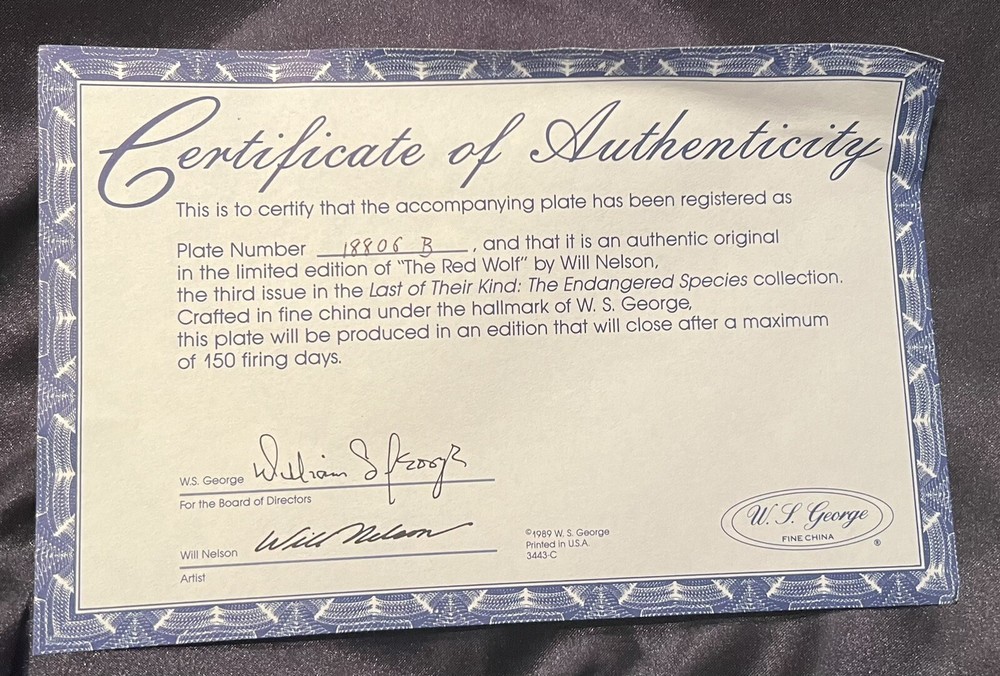 Time Period Manufactured:1990-1999Era:Late 20th Century (1970-1999)Pattern:Animal PrintCulture:AmericanBrand:Bradford ExchangeItem Diameter:8.5 inColor:MulticolorArtist:Will NelsonStyle:DecorativeOccasion:All OccasionsItem:Collector PlateType:Collector PlateTheme:PintailModel:Siberian TigerManufacturer:W S GeorgeSport:Hunting NatureVintage:YesProduction Style:Art PotteryCollection:Siberian TigerYear:1990Country/Region of Manufacture:United StatesProduction Technique:PotteryOrigin:USAMaterial:PorcelainShape:Round