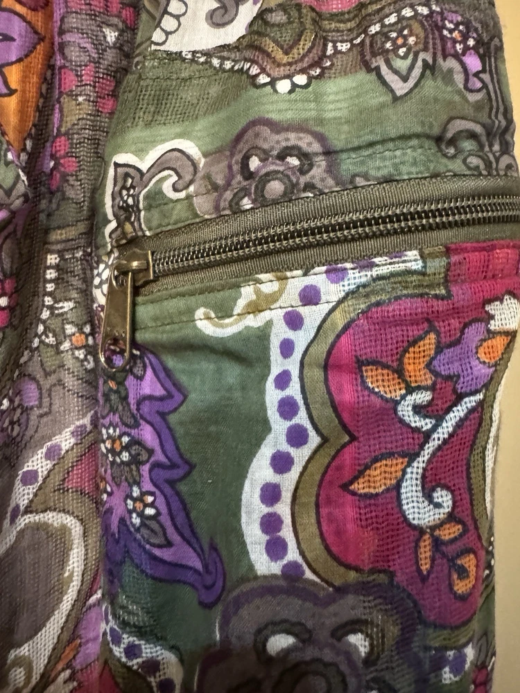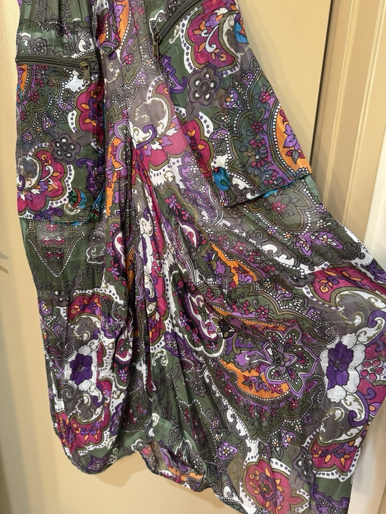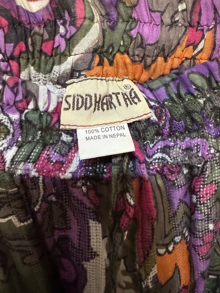 Siddhartha 100% Cotton Meditation Skirt Partially lined in Cotton Drawstring elastic waist Zipper closure from oversized pockets Made in Nepal No size listed, waist unstreched - 12” across Will stretch up to 18” Excellent condition Smoke free home. Payment is due within 2 days of auction close. Item will be shipped within 2 business days upon completion of payment. All sales are final. Sorry, no returns. Please ask any questions before your bid is placed