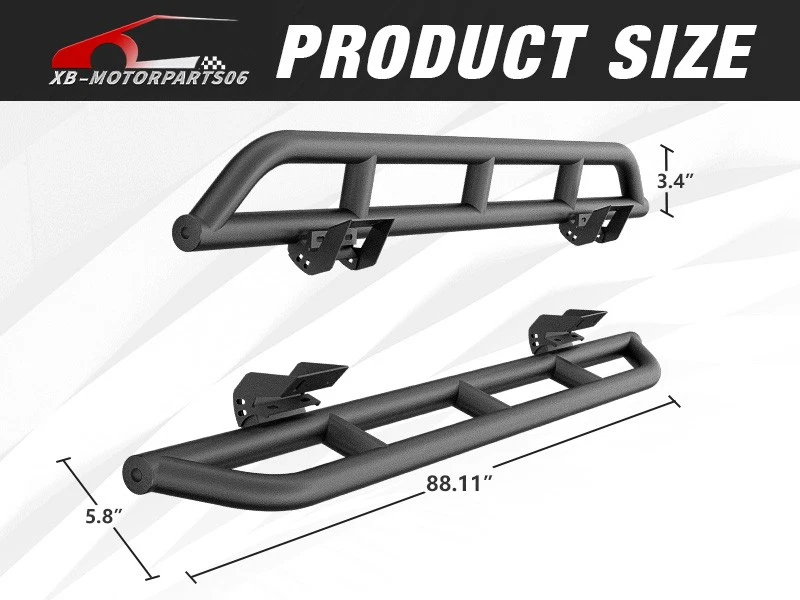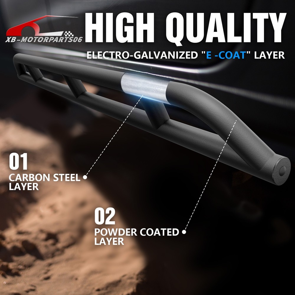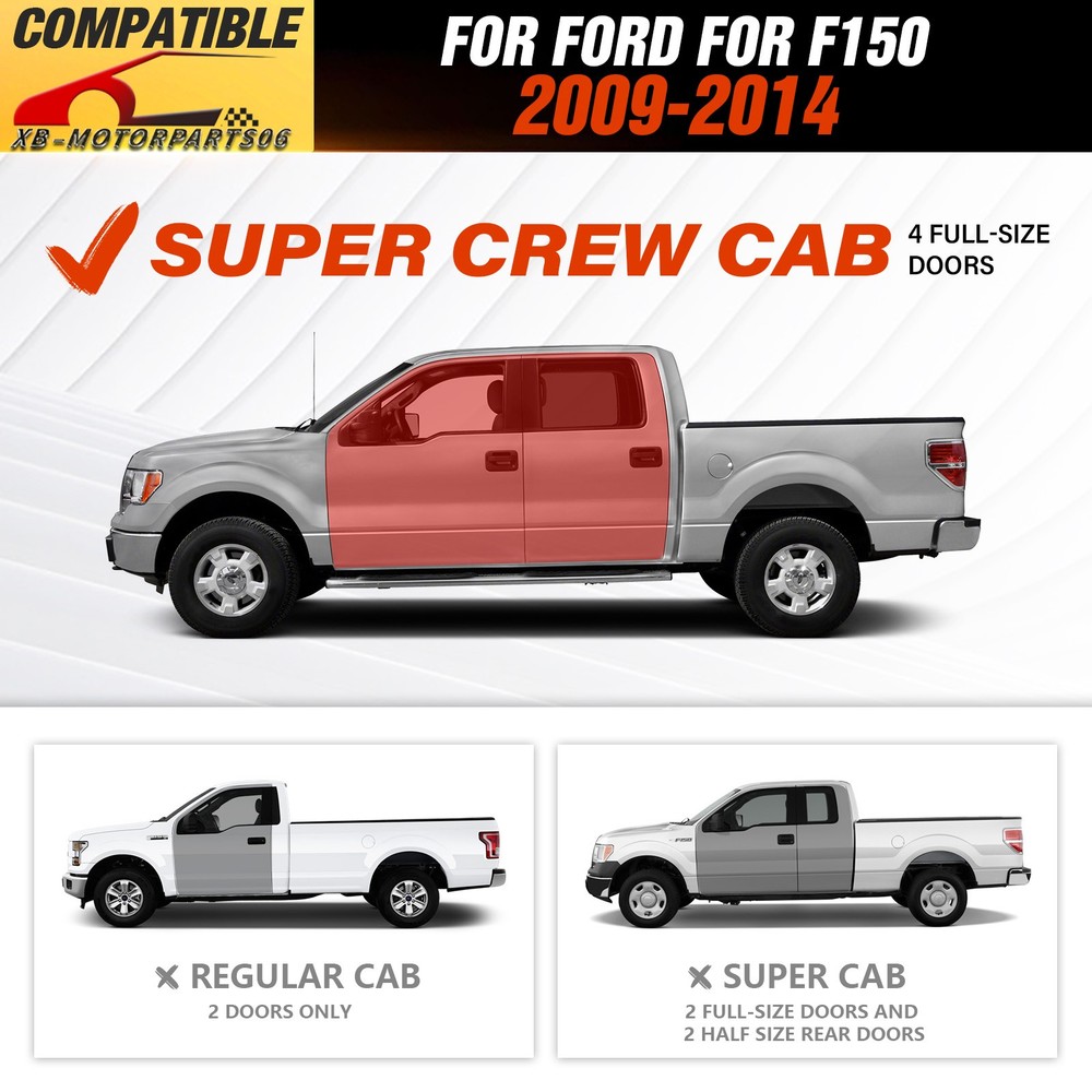 Side Step Running Boards Bolt-on Nerf Bar For 2009-2014 Ford F-150 SuperCrew Cab Suitable Models : Compatible with 2009-2014 Ford F150 F-150 SuperCrew Cab Package Includes : 2 × Running Boards Side Steps, brackets, instructions, and all necessary hardware Product Information : Product Dimensions: 88.11 x 5.80 x 3.40 inches Installation mode: Bolt-On Weight Limit: 550LBS Placement on Vehicle: Left and Right Item Weight: 46.20 Pounds Material: Carbon Steel Color: Black (hand measurements may have an error of 2-3 mm/0.078-0.118 in) Feature: ① Protect the lower cab and chassis of the vehicle from off-road obstacles, or serve as a pivot point for exiting test obstacles; ② The high-quality black powder coating provides outstanding rust and corrosion resistance. Constructed from heavy-duty 2mm carbon steel, each side can withstand a weight of 550 pounds. Precision laser cutting and stamping techniques contribute to a non-slip step surface and enhanced traction; ③ Simple bolt-on installation without the need for drilling or cutting. Precisely aligned mounting holes require only about 20 minutes for complete setup. The package includes 2 side bars, a set of brackets, installation instructions, and all necessary hardware—no additional parts required; Warranty Period : 1 year Standard Shipping (FedEx Ground or FedEx Home Delivery) Will usually ship within 3 business days of receiving cleared payment Suitable Models : Compatible with 2009-2014 Ford F150 F-150 SuperCrew Cab Package Includes : 2 × Running Boards Side Steps, brackets, instructions, and all necessary hardware Product Information : Product Dimensions: 88.11 x 5.80 x 3.40 inches Installation mode: Bolt-On Weight Limit: 550LBS Placement on Vehicle: Left and Right Item Weight: 46.20 Pounds Material: Carbon Steel Color: Black (hand measurements may have an error of 2-3 mm/0.078-0.118 in) Feature: ① Protect the lower cab and chassis of the vehicle from off-road obstacles, or serve as a pivot point for exiting test obstacles; ② The high-quality black powder coating provides outstanding rust and corrosion resistance. Constructed from heavy-duty 2mm carbon steel, each side can withstand a weight of 550 pounds. Precision laser cutting and stamping techniques contribute to a non-slip step surface and enhanced traction; ③ Simple bolt-on installation without the need for drilling or cutting. Precisely aligned mounting holes require only about 20 minutes for complete setup. The package includes 2 side bars, a set of brackets, installation instructions, and all necessary hardware—no additional parts required; Warranty Period : 1 year On Dec 12, 2025 at 15:12:31 PST, seller added the following information: