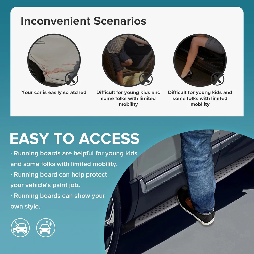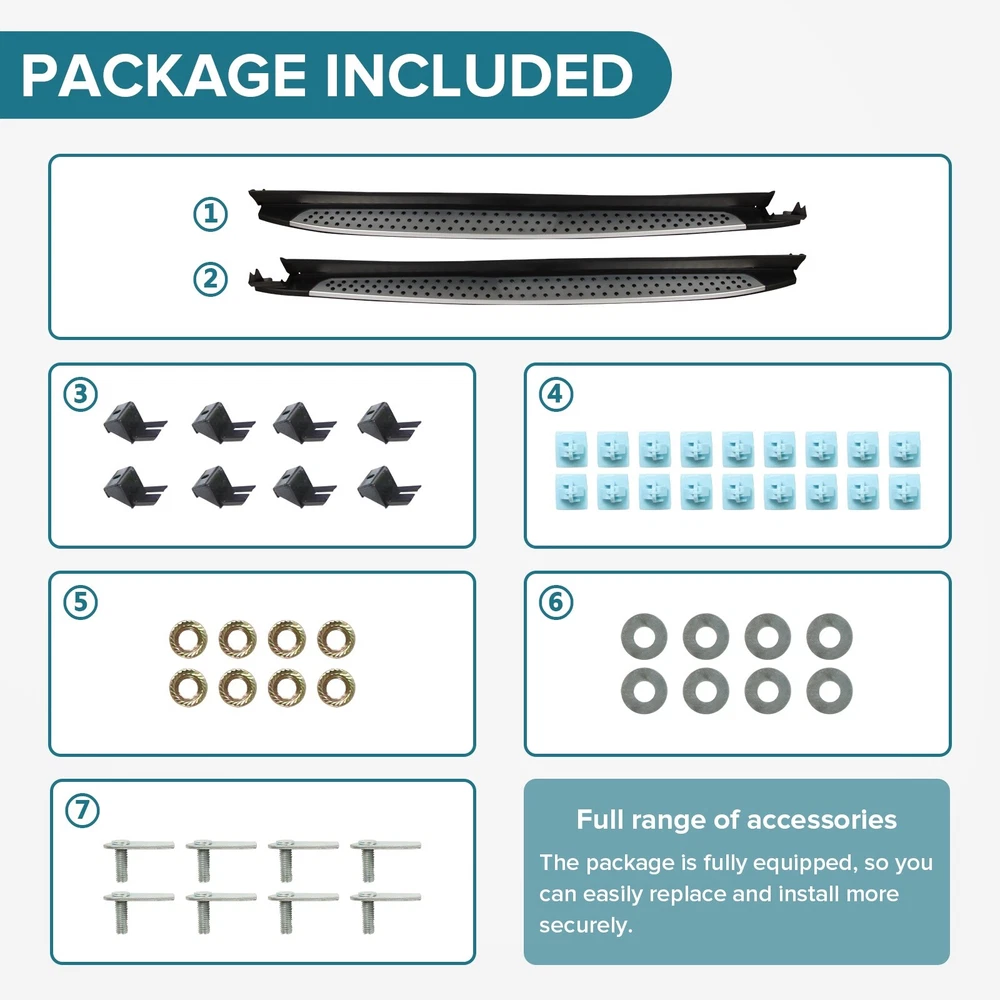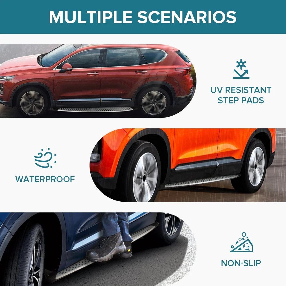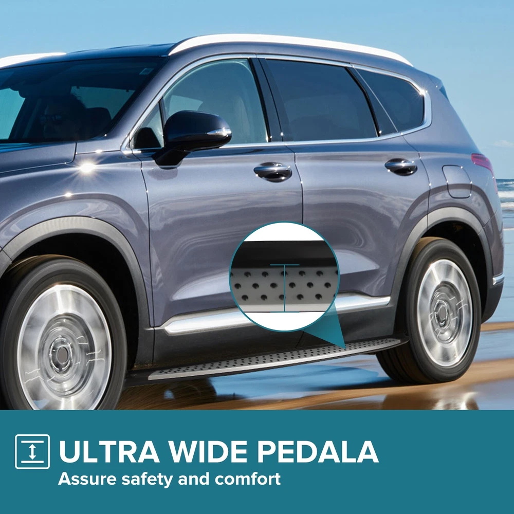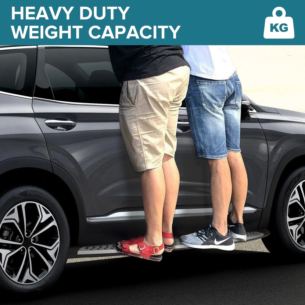 Specification Color: Black+silver Type: Step Nerf Bar Placement on Vehicle: Left, Right Fitment Type: Performance/Custom Material: Stainless Steel,ABS Shape: Rectangular Mounting Hardware Included: YES Package Size: 76.97*10.63*8.46 Package Weight: 25.9 Fitment 2019-2023 Hyundai Santa Fe Features & Benefits 1. High-Grade Construction: These running boards, also known as Side Steps, are made from high-grade Stainless Steel. This makes them lightweight yet extremely durable, perfect for long-term use. 2. Weather Resistant: Built tough, these running boards are highly resistant to corrosion. They perform well in all weather conditions, making them a reliable addition to your vehicle. 3. Easy Assembly and Removal: These running boards are designed for easy assembly and removal. This means you can easily install them when needed and remove them when not in use. 4. OEM Replacement with Quality Guarantee: These running boards serve as the perfect OEM replacement. They come with a quality guarantee, ensuring that you get the best value for your money. 5. Enhances Vehicle's Exterior: Apart from their functional benefits, these running boards also provide a great upgrade for your vehicle's exterior look. Please ensure to check the compatibility of these running boards with your vehicle before ordering. Feel free to contact us if you have any questions. On Nov 19, 2024 at 01:55:37 PST, seller added the following information: On Nov 22, 2024 at 01:59:13 PST, seller added the following information: