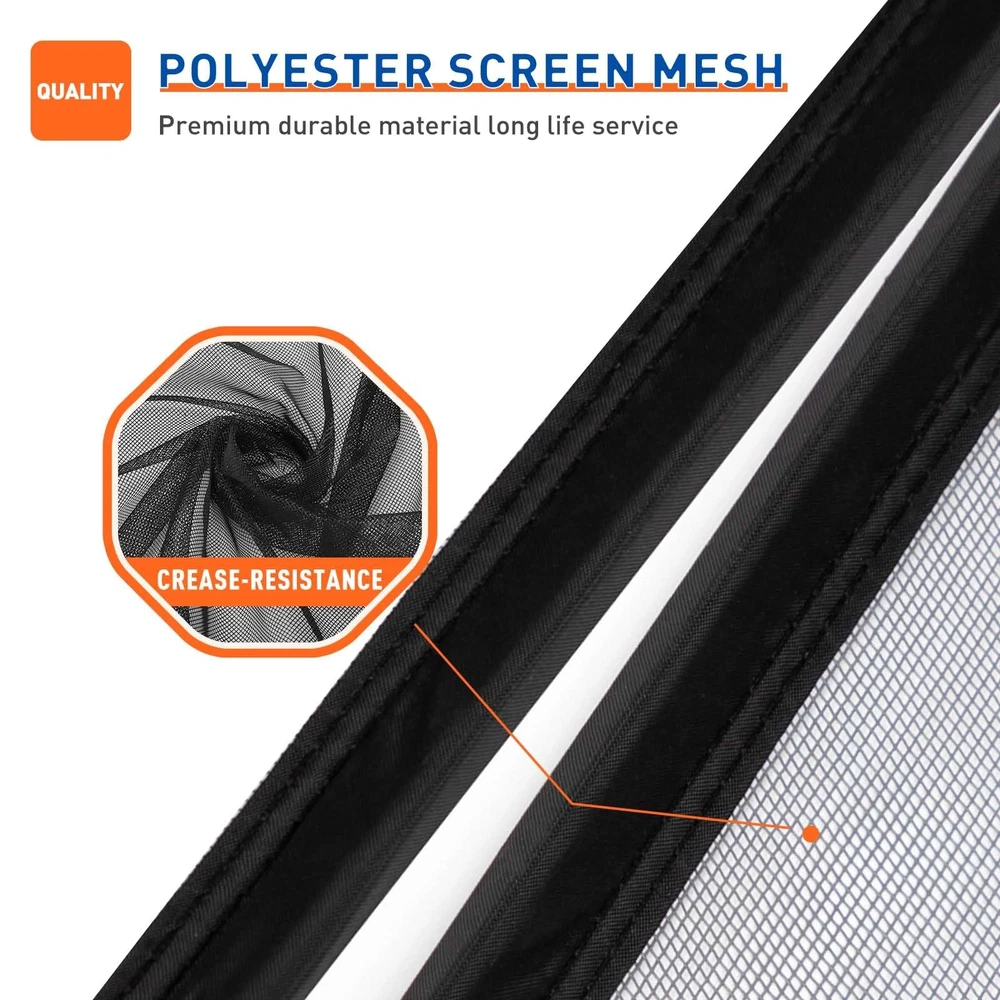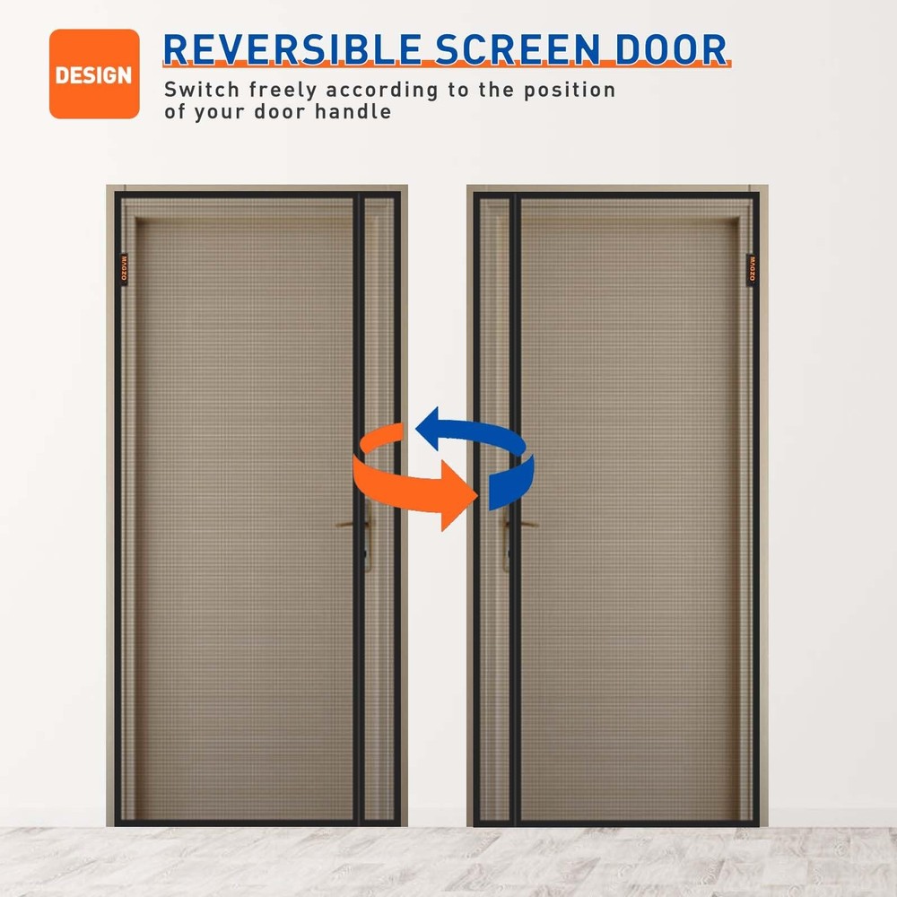 SUITABLE SIZE - Actual Screen door size: 38 x 81 inch, Fit door size: 36 x 80 inch. Before purchasing, please carefully measure your door size (not include door frame part) and order that size; REVERSIBLE OPENING DESIGN - The magnet screen door with full-frame loop strips on both sides, so you can turn the screen over to adjust the opening side you need. Enjoy a convenient and comfortable life! SUITABLE SIZE: Actual magnetic door screen size: 38 x 81 inch, fit door size: 36 x 80 inch. Before purchasing, please carefully measure your door size (not include door frame part) and order that size REINFORCED MAGNET & HANDS-FREE: The door screen magnetic closure with 99% enhanced performance are sewn right into the seams to offer you an enjoyable experience with hands-free opening and quietly automatic closing LEFT/RIGHT SIDE-OPEN DESIGN: The open side of the screen door mesh can be switched reversibly by the positon of door handle due to the door net screen can be attached with hook & loop tape on both sides. You can easily get a full view STURDY FIBERGLASS MATERIAL: The mesh screen door is made of fiberglass material which is superior than other mesh. It also has excellent performance in durability, windproof, and has a high tensile strength VENTILATED SCREEN DOOR SOLUTION: With this magnetic screen door mesh, you can bring fresh air in to your home everyday, and still keep the unwanted creatures out KIDS & PETS FRIENDLY: The mesh screen doors with magnets pet friendly are lightweight enough for kids and pets to walk through. You can enjoy peace of mind, as there's no need to constantly monitor the open - close state of the screen EASY TO INSTALL: The door mesh screen can be installed easily without tools. First, clean the door frame simply. Second, attach the door screen and included hook & loop strip to the frame. Last, pins are used to fix PACKING LIST & AFTER-SALES SERVICE: The patio screen door comes with full-frame hook & loop tape, a pack of drawing pins and an instruction manual. If you have any questions about the product or the installation process, please feel free to contact us