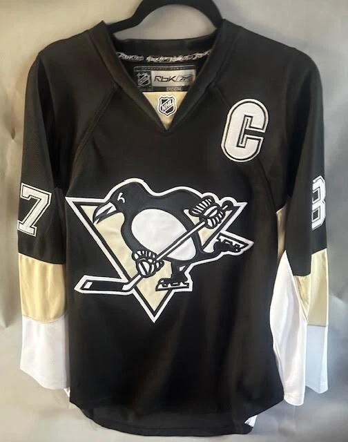Show your support for the Pittsburgh Penguins and one of their greatest players of all time, Sidney Crosby, with this Reebok jersey. Made with CCM technology, this high-quality jersey is perfect for any fan looking to represent their favorite team on and off the ice. The black color and size 52 make it a great fit for any male fan, while the NHL logo and Reebok branding add to the overall appeal of the product. Perfect for game days or casual wear, this jersey is a must-have for any true Penguins fan.