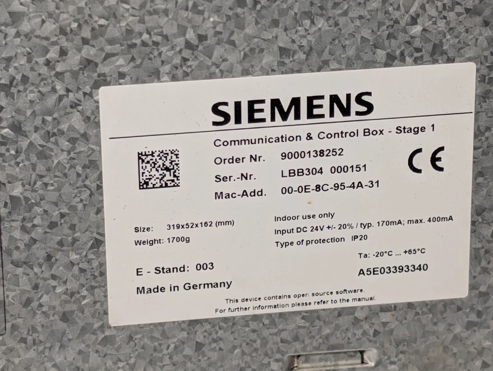 Siemens A5E03393340 Communication & Control Box Stage 1 - Order No.: 9000138252 gebraucht, getestet ohne OVP. used