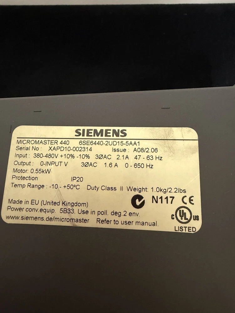 Siemens Micromaster 440 6SE6440-2UD15-5AA1 0.55kw Inverter Drive Removed from working system Sold as shown in pictures