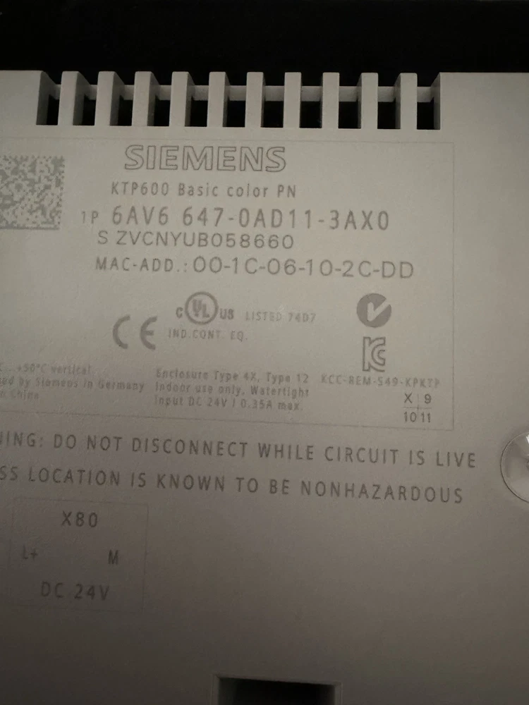 Siemens Simatic Panel KTP600 Basic Color PN 6AV6 647-0AD11-3AX0 Good working condition Sold as shown in pictures
