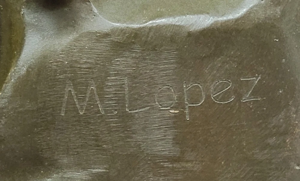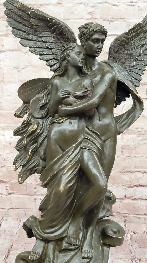 Signed Cupid and Psyche Statue Bronze Greek Mythology Sculpture by Milo Decor Signed Cupid and Psyche Statue Bronze Greek Mythology Sculpture by Milo Decor Condition : This sculpture is in perfect condition. Bronze Dimensions with Marble Base: Height 20.5" X Width 10" Marble Dimensions: Diameter 8" Height without base:19" Weight:21 LBS Inventory:35GTS85211753 This magnificent bronze statue of Eros and Psyche, designed by Miguel Lopez, also known as Milo, captures the timeless beauty and passion of Greek mythology’s most romantic tale. Eros, the god of love, embraces Psyche, the mortal woman who captured his heart, in a graceful and tender moment of divine affection. Handcrafted using the ancient lost wax method, this sculpture showcases extraordinary detail and flowing forms, from the delicate curvature of their bodies to the emotional expression conveyed in their faces. The piece is finished in a deep brown patina, enhancing its classical allure and timeless elegance. This large-scale artwork is mounted on a round black marble base, providing a sturdy foundation and contrasting beautifully with the warmth of the bronze. Signed by the artist, it makes a stunning statement in any fine art collection, classical décor, or romantic setting. Shipping Terms : Most of our items are shipped via USPS (United States Postal Service) mail or UPS. Most orders are shipped within 24-48 hours of purchase. Please be aware that not all items are available for USPS shipping due to size and weight. We do ship to Hawaii, Alaska, Canada, Puerto Rico, APO/AE, and U.S. Virgin Islands, however, an additional charge may be required. Please contact us before making any purchases in these areas. For Non-USA customers, you may be responsible for all duty, tax, brokerage fees that may be due upon delivery (shipping costs cover freight charges only). We also ship internationally. Please refer to the "Shipping and Handling" chart for the rates for each area. Payment : We accept just about any form of payment. PayPal, Master Card, Visa or American Express credit cards. Money orders, cashiers checks, and even personal or business checks. For governmental institutions, we will also accept a purchase order. Please understand that for personal or business checks we have to wait for the check to clear (usually 7 days) before shipping. Condition : New Detailed Hand Crafted Hot Cast Bronze Satisfaction Guaranteed. This is Stock Photo, Slight Color Variation!! Listing and template services provided by inkFrog