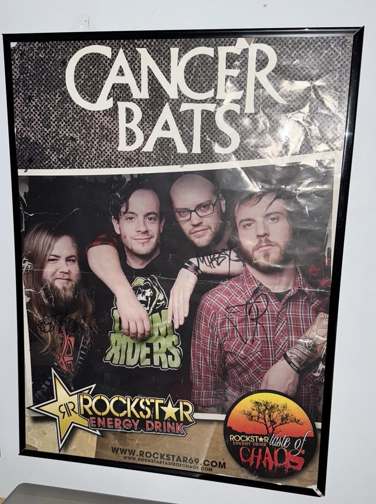 Signed Cancer Bats Poster from Taste of Chaos Tour 2008. Poster is in rough condition as it is from 2008. It comes framed and 3/4 members signed it. Feel free to submit an offer. Fast and free shipping. Willing to ship overseas for a higher price. Please message before you buy if you’re overseas.