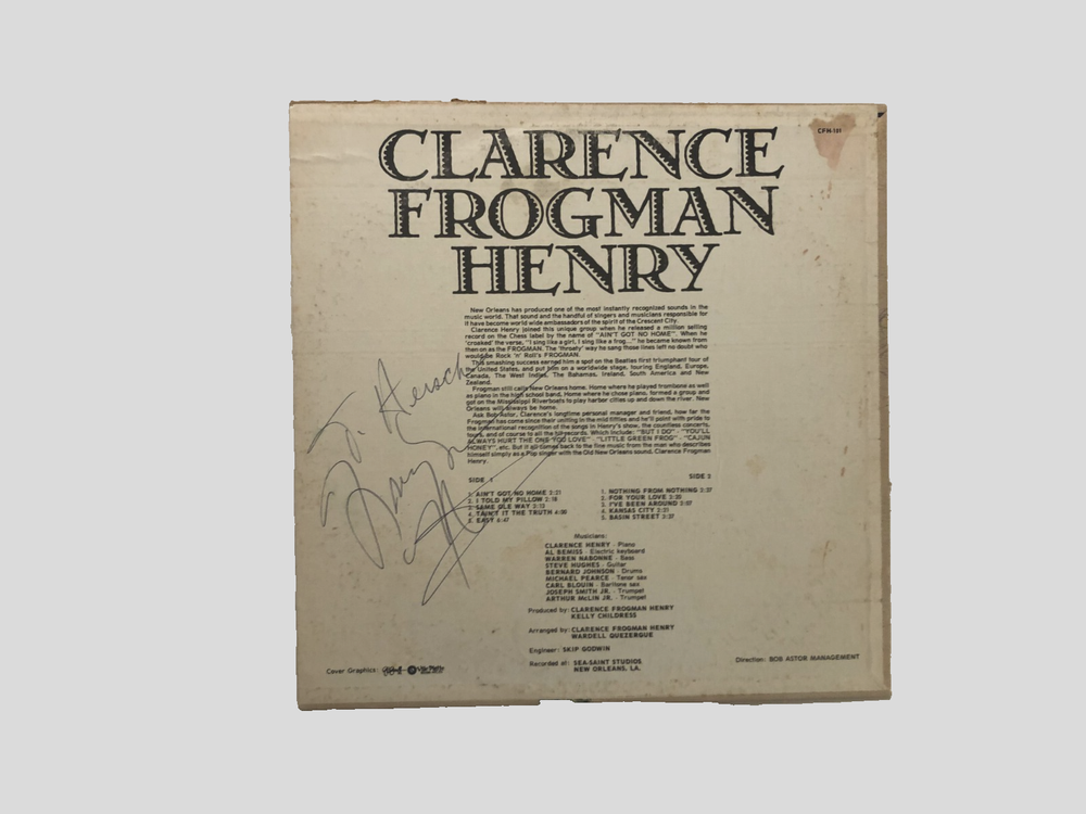 This vintage 1962 vinyl LP by Clarence Frogman Henry, titled "Bourbon St. New Orleans," is a rare gem for collectors and music enthusiasts. The signed copy adds an extra layer of uniqueness to the piece, making it a valuable addition to any collection. With a classic 1960s style and vocals, this record is a must-have for fans of pop and easy listening music. The 33 RPM mono recording on black vinyl in a cardboard sleeve is a testament to the era and the artist's influence on the genre. Sale conditions for all new/old stock vintage (20+ years) still-sealed record albums only *Please read the condition description carefully. *Visual grading only, under a clear 60 watts light bulb, to the best of my ability. *No returns accepted on all sealed albums if opened or shrinkwrap removed. *All returns must be in same condition when received. *All sealed albums are listed and sold as collectible, investment, and/or future PSA grading, and not as a playing copy. *For playing and enjoyment, I recommend an excellent to near mint copy. *I will list only albums that is in decent condition and playable for listening. *Original or replacement paper inner sleeve. *Record with no warping. *Signed and inscribed with a black Sharpie. *Please note: (New and sealed only) Album cover with minor creases, and flaws such as dented and/or creases corners, shrink-wrap with partial tears, and ring wear are possible. *If you have any questions or concerns before buying, feel free to contact me. Thank you. Vintage 60s Ville Platte Records CFH-101 Mono Clarence Frogman Henry "Bourbon St. New Orleans" (1962) Signed & Inscribed LP Condition: Pre-owned.