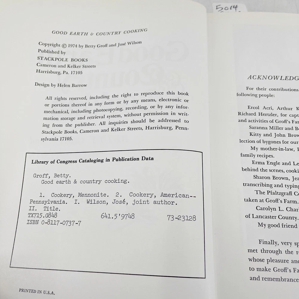 Good Earth & Country Cookbook SIGNED Betty Groff & Jose Wilson PA Dutch Cookbook Signed by both Authors