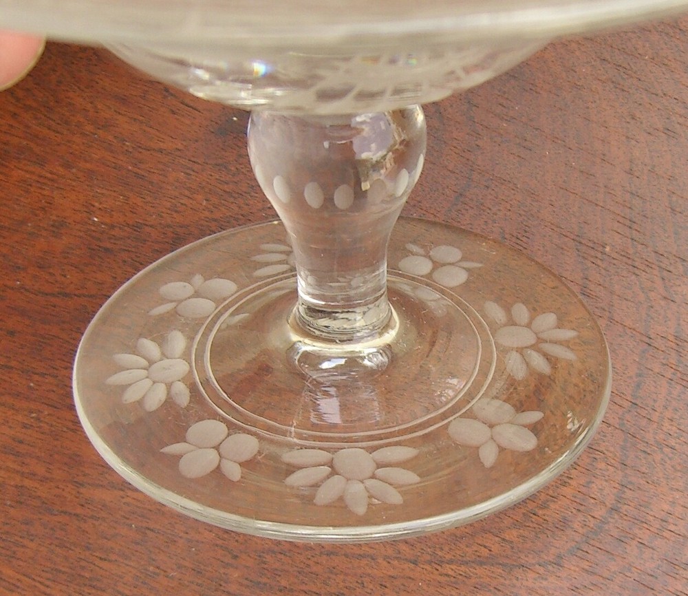 Signed Libbey Engraved Glass Footed Compote or Candy Dish Engraved both within bowl and on base with Floral, Drapery & Foliage design. Signed on underside. (hard to see in pics but it's there) Stands approximately 4" tall and measures 6 1/8" in diameter. Base diameter is 3 1/8". Excellent Estate condition. No defects found. See other items JUST THE FACTS, MA'AM NOTES I try hard to have all silver hand polished before shipping. Most will have been polished before the photos were taken. Sometimes I miss. I do not polish other metals. All books may have an erased or penciled price on an early page. SHIPPING DISCOUNTS Always happy to combine multiple purchases if physically and safely possible. SHIPPING --CONTINENTAL UNITED STATES eBay's shipping and fees policies have required the addition of a Shipping & Handling fee -- minimum $1.00. The S&H fees will include Tracking on all packages, subject to USPS rules. For all purchases $49.99 and over, all James Avery, and all breakables, the S&H fee will also include USPS or eBay Sponsored Insurance fees for the 'Estimated Closing Price'. Current Priority Mail rules give automatic, free insurance for some Priority Mail packages. If your package qualifies I will refund any S&H fees I charged for insurance. Because of "Estimated Closing Price" and the all too frequent 'wild hair' that is eBay -- eBay's shipping calculator and actual shipping and handling costs ofttimes vary. I send out invoices thru the eBay system ASAP (usually within 24 hours) and will correct shipping charges on those invoices. If you wish to avoid a potential slight overcharge, please, wait for my invoice. I cannot be responsible for uninsured items once they are delivered to the Post Office. Items will generally ship within one day, but at most, two working days of cleared payment (i.e. a payment received on Thursday may not ship until Monday). I will email if there is some reason for delay. I do send email confirmations of shipment. SHIPPING AND DETAILS -- OVERSEAS I do not ship anywhere in Africa. Assume that I will not ship to any country in political turmoil. You can see the list in the Shipping Details section. Buyers outside the USA must have: » at least 20 feedback ratings with 100% positive for a period that exceeds 3 months. PayPal required for overseas transactions. A minimum $2.00 handling fee is charged on overseas transactions to cover additional paperwork and packaging costs. This fee will be assessed only once in the case of multiple purchases. Overseas Priority and Express Mail have an inherent insurance based on weight and additional insurance can be purchased . This is also true for the larger Flat Rate boxes. First Class Mail International and Priority Mail Small Box Flat Rate do not include insurance and NO additional insurance can be purchased . Responsibility for an uninsured package will transfer to the buyer at the time I deliver the package to the Post Office. Customs declarations will be the price you paid. Items will ship within two working days of cleared payment (i.e. a payment received on Thursday may not ship until Monday). PAYMENT DETAILS An eBay system invoice will be sent within 24 hours of the close of sale. Payment is expected within 5 days. Write me if there is a problem. Cash or business checks are accepted for local pickup items. Texas residents must present a valid resale number or pay 8.25% sales tax. Again, just drop me an email and I'll adjust the invoice. RETURNS & GUARANTEES All items guaranteed to be as represented. However, I am an antique dealer who deals in old, used items. Unless I call it NEW it isn't, and will probably show signs of age or wear. I will describe anything that I consider to be more than normal wear. Returns must be preauthorized (send me an email or call), otherwise, no refunds will be made. Returns must be shipped within 3 days of receipt of authorization with item in original condition. Insurance required if the original package was insured. Tracking required on all returns. Any refund issued will be for full purchase price only . No shipping charges refunded. FEEDBACK I leave feedback after successful completion of the sale. I determine that the sale has been successfully completed when I receive your feedback. AND FINALLY Seller reserves the right to cancel sale and relist item if: 1) payment has not been received within 5 days of receipt of invoice, or 2) overseas buyer is from a country on my exclusion list or excluded above. Thanks for looking and good luck.