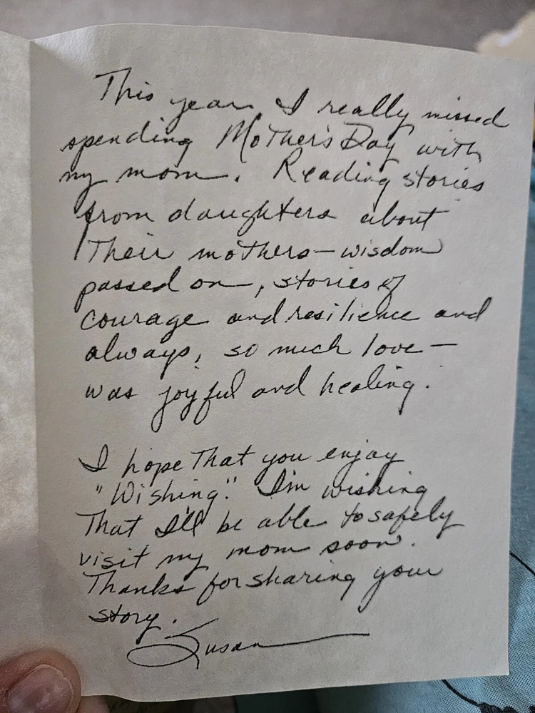 New signed "Wishing". Won in a contest during Covid, for Mother's Day. Original note from Susan included