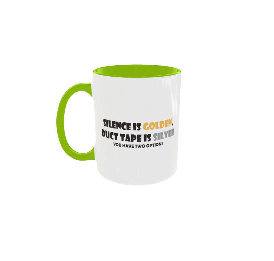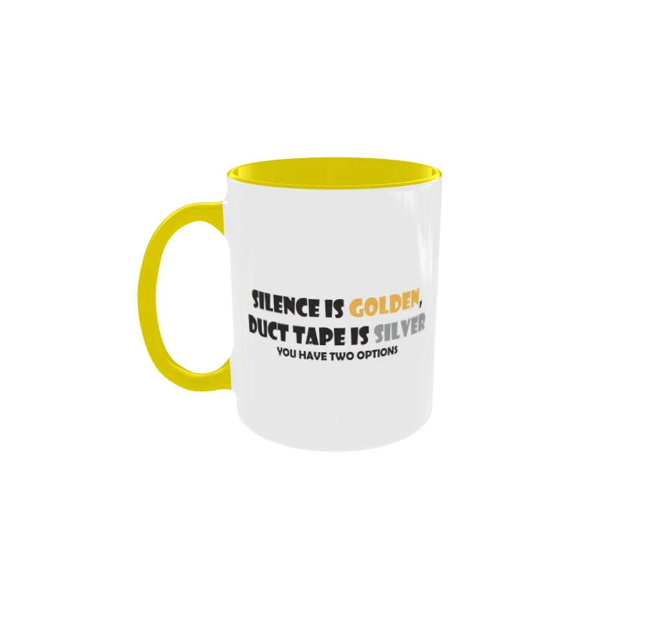 The 11.oz Coffee Mug with the theme of "Silence is golden" is a novelty ceramic mug designed for all occasions. It features a multicolor design with a variety of themes including Gadgets & Tools, Hobbies & Crafts, Holiday/Christmas, and more. This microwave, dishwasher, and oven-safe mug is perfect for those who enjoy a cup of coffee while exploring their interests in TV, Movies & Music, Celestial & Horoscope, and Sports. With a unique and fun design, this coffee mug is a great addition to any kitchen or dining area.