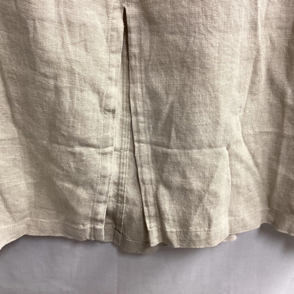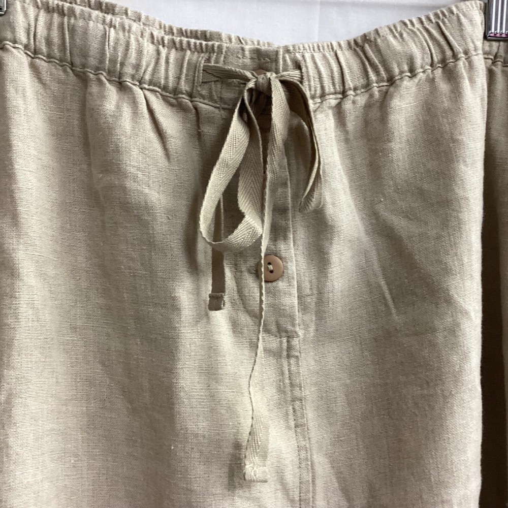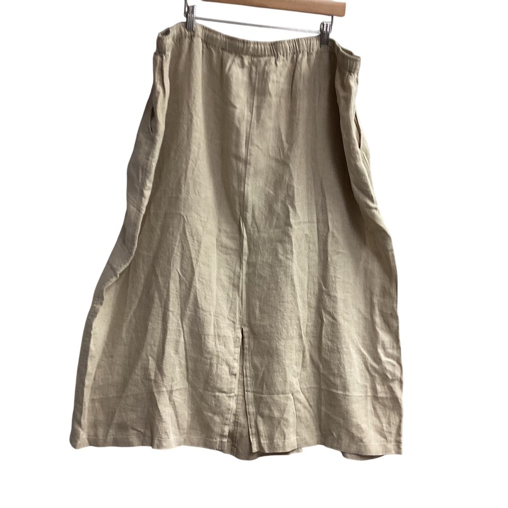 Classic linen skirt offering both comfort and style. This skirt features a comfortable elastic waistband with a drawstring for an adjustable fit, complemented by a decorative button detail. The design includes practical side pockets, adding functionality to its relaxed silhouette. The skirt's versatile style makes it suitable for a casual day out, a relaxed office setting, or a comfortable travel outfit. Type: Skirt Style: Maxi/Midi See Photos for Measurements Skirt Length: Long Color: Beige Department: Women Pattern: Solid Material: Linen Accents: Button Fabric Type: Lace Features: Elastic Waist, Pockets, Lightweight/Back Slit Character: Boho, Casual, Chic Closure: Drawstring/Elastic Waist Occasion: Casual, Travel, Workwear Keywords: linen skirt, maxi skirt, plus size skirt, elastic waist skirt, drawstring skirt, casual skirt, bohemian skirt, beach skirt, summer skirt, comfortable skirt, pockets, Silhouettes, 3X Flaws: None. Looks Great! Note: Colors may appear different in person due to lighting during photography. Item is PREOWNED Unless Otherwise Specified. Please See All Photos. I try to provide plenty of photos and information. Please see all photos For Details. I ship quick, typically within 24 hours. Holidays and Weekends Might Affect Shipping. Thank you for your interest. B13