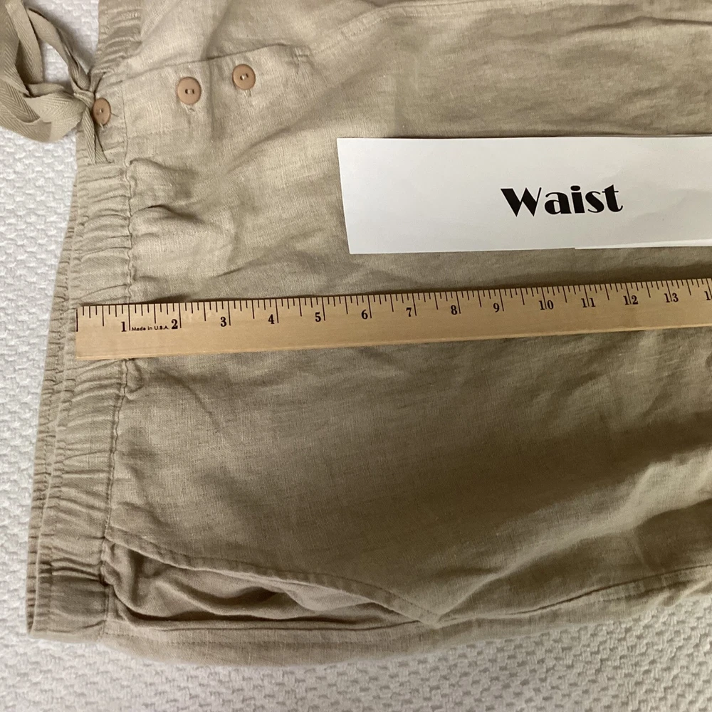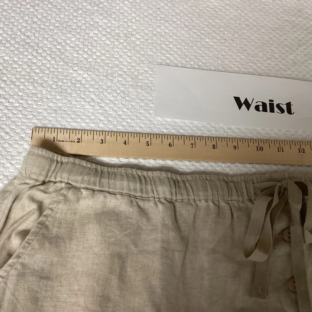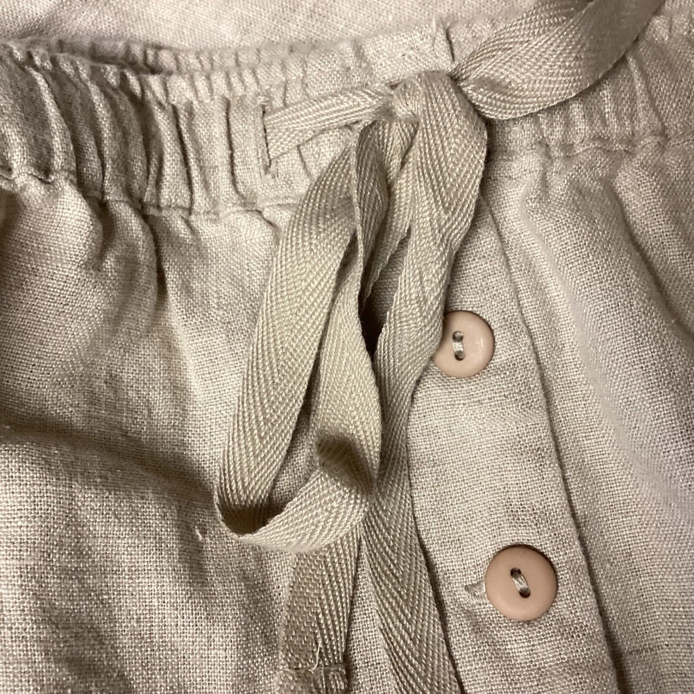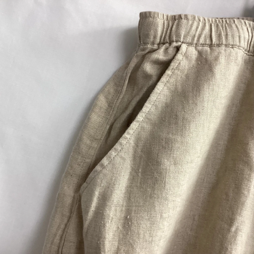 Classic linen skirt offering both comfort and style. This skirt features a comfortable elastic waistband with a drawstring for an adjustable fit, complemented by a decorative button detail. The design includes practical side pockets, adding functionality to its relaxed silhouette. The skirt's versatile style makes it suitable for a casual day out, a relaxed office setting, or a comfortable travel outfit. Type: Skirt Style: Maxi/Midi See Photos for Measurements Skirt Length: Long Color: Beige Department: Women Pattern: Solid Material: Linen Accents: Button Fabric Type: Lace Features: Elastic Waist, Pockets, Lightweight/Back Slit Character: Boho, Casual, Chic Closure: Drawstring/Elastic Waist Occasion: Casual, Travel, Workwear Keywords: linen skirt, maxi skirt, plus size skirt, elastic waist skirt, drawstring skirt, casual skirt, bohemian skirt, beach skirt, summer skirt, comfortable skirt, pockets, Silhouettes, 3X Flaws: None. Looks Great! Note: Colors may appear different in person due to lighting during photography. Item is PREOWNED Unless Otherwise Specified. Please See All Photos. I try to provide plenty of photos and information. Please see all photos For Details. I ship quick, typically within 24 hours. Holidays and Weekends Might Affect Shipping. Thank you for your interest. B13