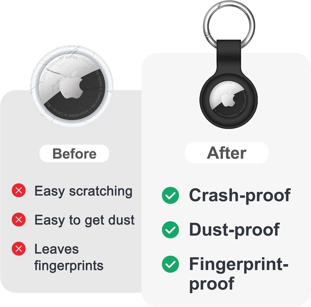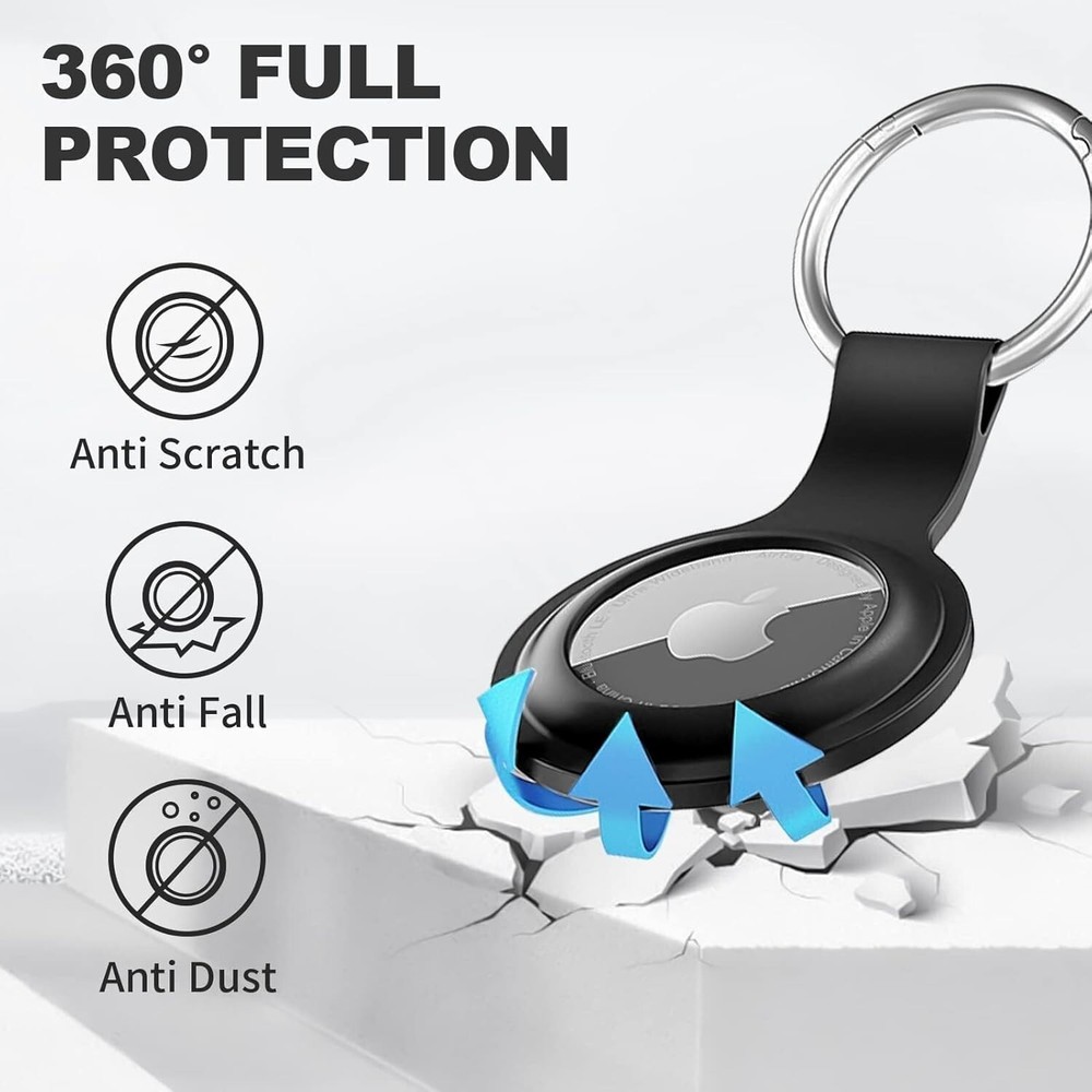 Compatibility :This silicone skin cover was specially designed for Apple Air Tag. Protect your Air Tag from shocks and scratches (The Air Tag not included) Shockproof Silicone Materia: The Air Tag holder is made of waterproof silicone material, which could provide a stronger buffer when bumps or drops to fully protect your Air Tag Anti-lost With Keychain Design: This Air Tag holder comes with metal keychain offered, so that you can easily hang the air tags everywhere. you can attach an Air Tag case holder to a dog/cat pet collar, car keyring, bag, the valuables, and more Easy Installation: The exposed hole design is very conducive to signal transmission and humanized installation. Just put your label in the silicone sleeve. Sophisticated design and precise production processes will make your Air tag look more elegant What You Will Get: We provide a premium silicone Air tag holder.