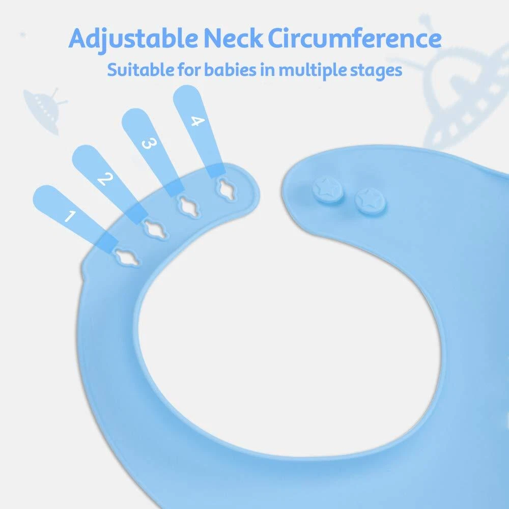 Yoofoss 3pcs Silicone Bibs accompanies the baby to grow up, Enjoy the fun of self-feeding every time. High-quality materials Using first-grade grade silicone, BPA and phthalate free, No odor, hypoallergenic. The mother can use it for the baby at ease. Make dining more happy Wear it when the baby is eating. The bib with food catcher can effectively collect a lot of the fallen food and liquid, ensuring that the baby and the surroundings are clean, allowing the baby to explore the fun of self-feeding freely. Comfortable to wear With ergonomic design, the neckline and back of the newborn bibs can better fit the baby's neck and abdomen, giving the baby a more comfortable wearing experience. Adjustable size The neckband has four holes and two snaps. You can adjust your baby's neck circumference to a comfortable size. Easy to clean Waterproof, oil-proof and stain-proof. Do not change clothes after each feeding. The infant bibs can be use a wet-cloth or soapy water to wash off stains in a few seconds. Best baby show choice Suitable thickness for all seasons. Foldable, easy to store and carry. The unseix bibs uses flexible silicone and fine workmanship to ensure that it can be used repeatedly for a long time.
