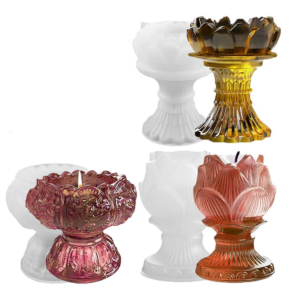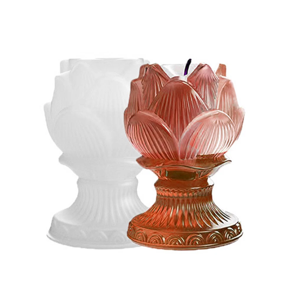 Silicone Crystal Epoxy Resin Mold Stemstick Lotus Candle Holder Storage DIY Mold
