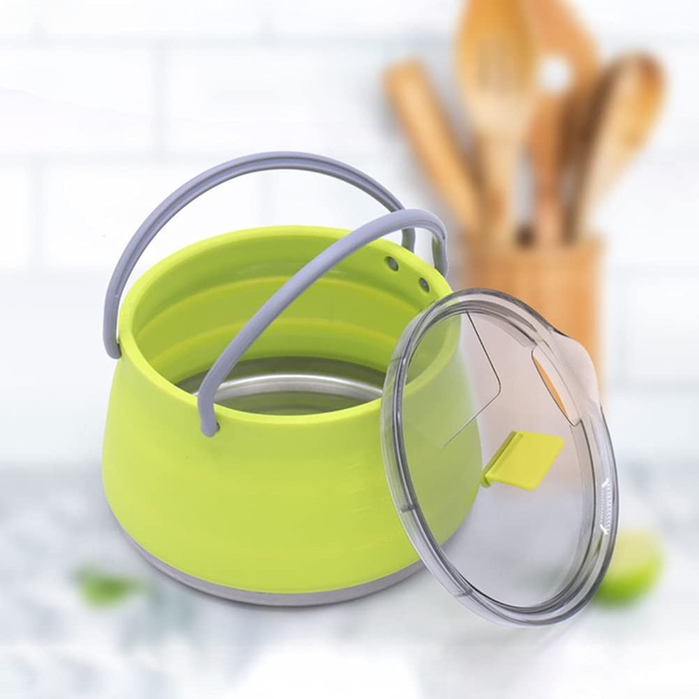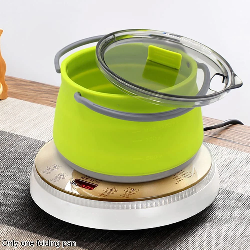 Description:SAFE MATERIAL: Food Grade Silicone Material, stainless steel bottom that conducts heat quickly and evenly, no fading, safe use, odorless, durable, flexible and reusable.FOLDABLE PORTABLE: The flexible silicone materials make them more easy to be folded. Take up no space in your pocket, backpack, bag, suitcase. Easy to carry or transport.APPLICATION: Saucepan is perfect for boiling water, convenient for use.CONVENIENTLY: Heat resistant lid of the small pots makes viewing inner easy from start to finish.Ergonomically designed, dual handles, provides you with a secure, solid and comfortable grip.OCCASIONS: Folded pan is widely indoor, outdoor used, great for camping, trip, hiking, travel, picnic, sport events and more.Specification:Material: SiliconeColor: Red, Blue, GreenSize(LxWxH): About 15x15x9.5cm/5.9x5.9x3.74inchCapacity: About 1LPackage includes:1pc x Folding Saucepan FOLDABLE PORTABLE: The flexible silicone materials make them more easy to be folded. Take up no space in your pocket, backpack, bag, suitcase. Easy to carry or transport. APPLICATION: Saucepan is perfect for boiling water, convenient for use. OCCASIONS: Folded pan is widely indoor, outdoor used, great for camping, trip, hiking, travel, picnic, sport events and more. SAFE MATERIAL: Food Grade Silicone Material, stainless steel bottom that conducts heat quickly and evenly, no fading, safe use, odorless, durable, flexible and reusable.Capacity: About 1L. CONVENIENTLY: Heat resistant lid of the small pots makes viewing inner easy from start to finish. Ergonomically designed, dual handles, provides you with a secure, solid and comfortable grip.