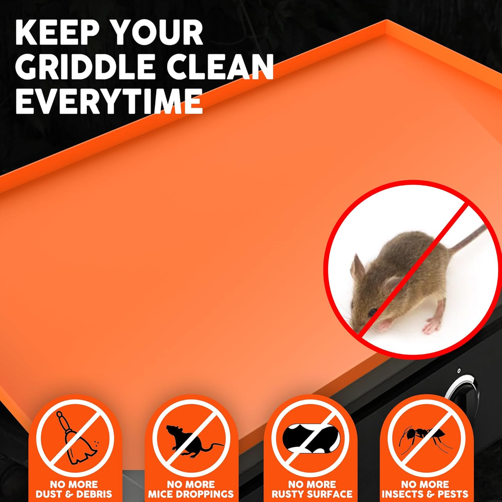 【Perfect Fit for Blackstone Griddles】Tailored to fit 36-inch Blackstone Griddles (models: 1554/1565/1818/1820/1825/1836/1841/1863/1866/1899/1932/1984) and other similar sizes. Carefully measure your grill before purchasing to ensure a snug fit. 【Comprehensive Protection】 This silicone griddle mat shields your griddle from rodents, insects, dust, debris, and rust damage. Its design ensures year-round protection, whether facing summer sun or winter elements. 【Surface Seal for Rust Prevention】 The silicone grill mat features a surface seal that effectively prevents rust and oxidation, preserving the aesthetic appeal and health of your griddle. It acts as a barrier against moisture and oxygen, extending your griddle's lifespan. 【Food-Grade Silicone】 Crafted from 100% food-grade silicone, the griddle mat is reliable, durable, easy to clean, and maintain. Rest assured about your health as this material is safe, making your griddle experience worry-free. 【Free Returns and Exchanges】Your satisfaction is guaranteed. If you're unsatisfied with the product or encounter any quality issues, enjoy hassle-free returns or exchanges. We're committed to providing you with a satisfactory solution. Product Description Silicone Griddle Mat Blackstone griddle cover Blackstone silicone griddle cover Blackstone griddle accessories Dryvovol Silicone Griddle Mat Add to Cart Add to Cart Add to Cart Customer Reviews 4.6 out of 5 stars 295 4.9 out of 5 stars 92 4.6 out of 5 stars 295 4.6 out of 5 stars 295 4.6 out of 5 stars 295 Price $9.99 $ 9 . 99 — — $24.99 $ 24 . 99 $25.99 $ 25 . 99 Size 15*16.8 15.5*11 15.8*21 17.7*28 21.5*36 for Blackstone Grill ✔ ✔ ✔ ✔ ✔ Materials Silicone Silicone Silicone Silicone Silicone Dishwasher safe ✔ ✔ ✔ ✔ ✔ Blackstone Size 17 All 22 28 36