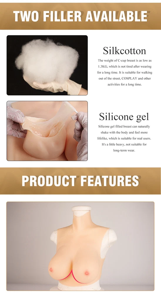 This silicone breast forms and silicone buttocks designed for man who want to be a woman, crossdressers,transgenders,drag queens, cosplay or just for fun.Also for mastectomy women to rebuild a better body shape. Breast Cavity Filler:Elastic Cotton Feature: 1.Soft and bounce like real feminine boobs, shake while you walk. 2.Can use make up, easy to clean. 3.Neck can be trimmed freely and easy to hide the neck and seams. NOTE :The picture is just for reference, different body type the effect will not be the same,If you have any question with our product & service, please email us without hesitation. You will get us within 24 hour. Package Included: 1 x silicone breast form packed in a sealed box with no description to keep privacy. Shipment: We have warehouse on US,UK and De, generally speaking item can be delivered within about 5-7 working days to US and whole Europe Returns&Refunds: 1.30 days no reason return if item is in good condition 2.Free exchange if size or color not suitable, you just need taking the shipping for cost send back 3.If you found any manufacturer defect or problem with the item, please email us within 30 days after receive the package. We would be glad to exchange or a refund , After get the returned item,we will refund the customer at the item's price We appreciate your contacting us firstly if have any problems with the products rather than submit the dispute to ebay directly, we will try our best to help you solve the problems. Malicious buyers please stay away from my shop. We will directly let you join our shop's blacklist.