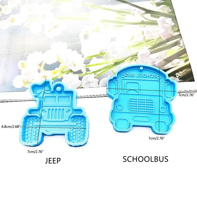 Features: brand new and high quality Can be applied to make various like keychain,bracelets,pendant,decoration tools. Can work well with most casting materials like polymer clay, resin, wax, clay and more, add any materials like glittery powders, dried flowers and sequins into the mold. Great mold for you to create handmade items, they will bring more fun during the crafting process. Made of silicone material, durable and flexible to use, good heat resistance, not easy to break. Small and lightweight, easy to make decorations and store,can making beautiful and send it to your friend as a gift. Specifications: Color:Blue Material: Silicone School Bus:Approx.7x7cm/2.75x2.75in (More detailed,please see photo.) Quantity: 1pc Package Includes: 1x Keychain Mold A/B/C note: There may be slight size due to manual measurement, different measuring methods and tools. 2. The picture may not reflect the actual color of the item because of different photographing light, and display