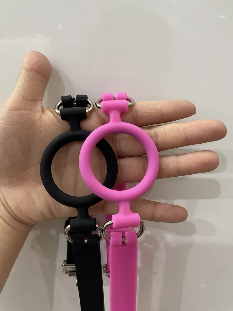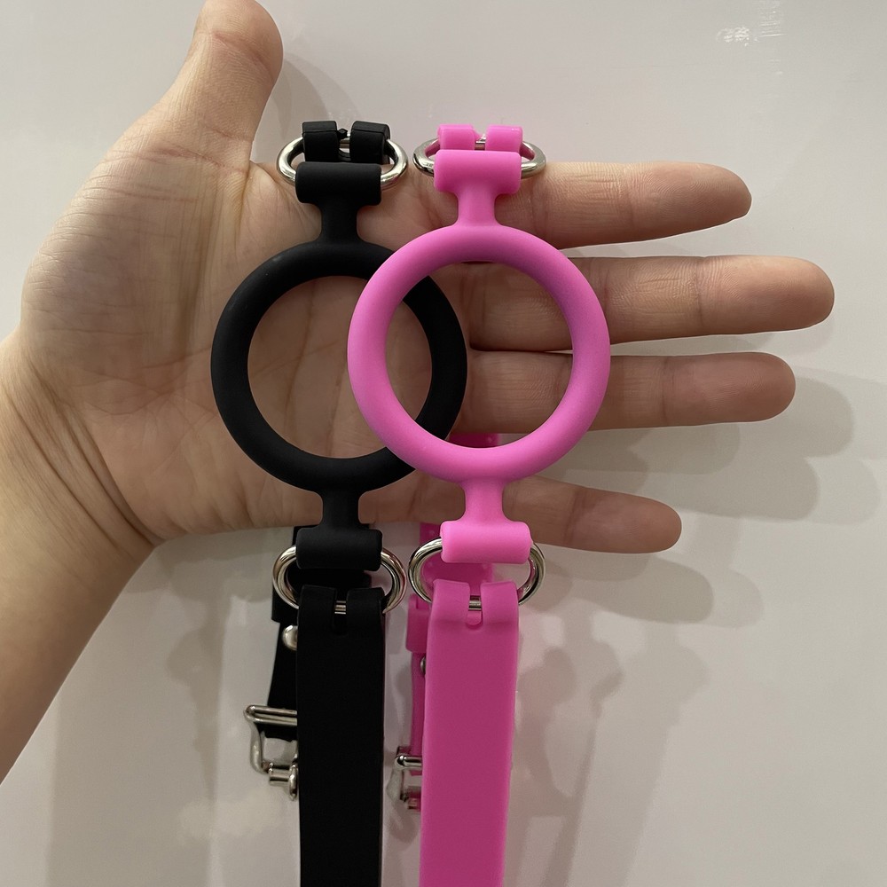 Feature: 1 00% brand new and hiqh quality Material: Silicone Color: pink/b lack Belts are adjustable. 56cm, lockable buckled Size ring : approx 5 cm Quantity: 1 piece Friendly Tips: The size is measured by hands, please allow minor error of measurement.