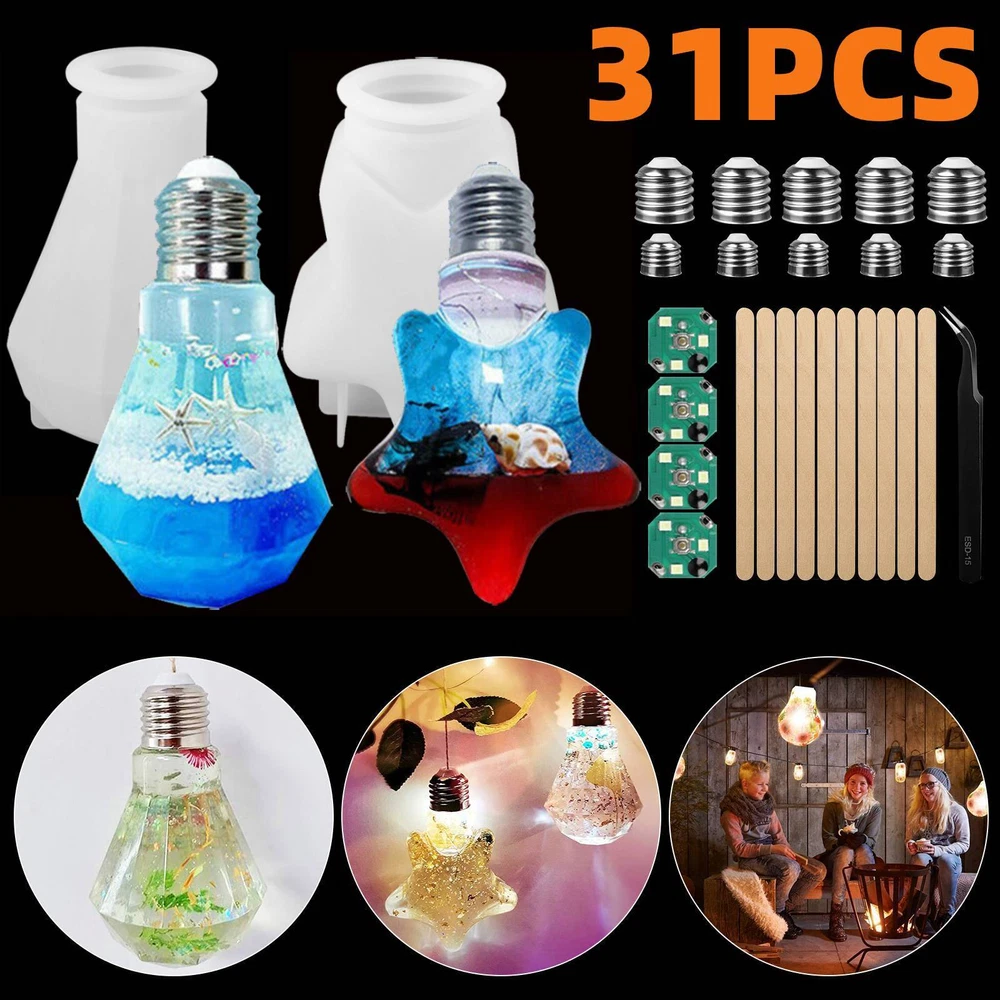 ✅ 11PCS Night Light Casting Mold Product Feature Novel design: Glass bottles resin molds latest designed. Included 1PCS silicone molds, 10pcs wood bottle stoppers, satisfy various DIY needs in your daily life. Durable: Made of durable silicone, the silicone molds for resin are flexible, smooth and reusable. expand your creativity, such as beautiful rainbows, delicate specimens of flowers and plants and wishing crystal bottle. Wide Application: Resin Silicone Molds for Household Decoration at Festivals Gifts, Perfect for office decor, workbench, bedside lamp, nursery lamp, children's room, holiday decor, party, wedding, birthday gifts. DIY Personalized: Your creation' immaculate combination with the LED luminous base makes the best present for your family, lover and friends. Perfect for birthday parties, Valentine's Day, commencement ceremonies and Mother's Day. User Tips: ① Don't use a heat gun or torch to speedily cure the resin. ② Just let it sit 5-10 minutes, after stirring the epoxy resin to reduce the bubbles. Note: Please note that the LED light base is not included. Product Specification Type Bottle Resin Casting Silicone Mold Quantity 11 PCS Material Silicone and wood Package Included 1 x Silicone molds 10 x Wood bottle stoppers ✅ 19PCS Dog Bone Keychain Mold Product Feature High-quality Material: Silicone mold keychain made of food-grade silicone, durable, flexible, good texture, safe and tasteless, and can be used for a long time. The non-stick surface makes it easier for you to use, and will not worry about adhesion. Heat Resistance: The safe temperature range is -40 to +410 degrees Fahrenheit (-40 to +210 degrees Celsius), and can be safely used in microwaves, ovens, refrigerators, freezers and dishwashers. DIY Handmade Gifts: Just add some small objects and paint, you can make meaningful handicrafts and DIY keychains for your pet or your friends and family, which will bring a lot of fun in the molding process and improve Your skills. Large-size Key Ring: The larger key ring allows you to pass through the finished hole without pressure to make a beautiful key pendant. (Different from other small key rings on the market) Multifunctional: Silicone molds can make dog tags.You can also add dried flowers, mica powder, sequins, etc. Sequins make the key chain decoration. Product Specification Type Resin Molds Quantity 19 PCS Material Food grade silicone Color Pink Package Included 4 x Keychain Silicone Mold 15 x Key Ring ✅ 1PC Coffin Mold Product Feature What You Will Get: Coffin box silicone molds. Size: App.12.5 x 7.5 cm/4.92 x 2.95 in. Good Quality Jewelry Box Molds: These silicone molds for resin are made of durable silicone, flexible, smooth and reusable, easy to use, de-mold, and clean. Easy to Release and Clean: Keep the resin jewelry molds interior smooth and clean before use, then it’s easy to fetch out your finished item after it’s completely cured; Clean the epoxy molds with soap water and storage them away from direct sunshine and dust. Wide Application: These resin molds for jewelry can be used to store the earring, ring, coin, key. Besides, you can use the resin molds as a candle holder, candy containers, desktop ornaments, flower pot for small plants, etc. The mold is used to make storage boxes, mini coffins, etc. or other accessories. It is also good for your family and friends to DIY unique and meaningful craft gifts. Product Specification Type Resin Molds Quantity 1 PC Material S ilicone Size App.12.5 x 7.5 cm/4.92 x 2.95 in Package Included 1 X Coffin Silicone Mold ✅ 1PC DIY 3D Skull Head Mold Package Included 1 x 3D Skull Head Resin Mold ✅ 1PC DIY Coaster Ashtray Mold Product Specification Type Skull Ashtray Silicone Mold Quantity 1 PCS Material Silicone Color White Size About 13x13 cm Package Included 1 x Resin Mold ✅ 229PCS Set Product Feature Material: High quality silicone resin jewelry molds material of silicone, which is flexible and smooth. Screw eye pins are made of metal alloy, stirrers, droppers and spoons are made of quality plastic. Contains with Various Shapes: 229 pieces in total, include 8 jewelry silicone casting molds (assorted styles), 5 plastic stirrer, 5 plastic dropper, 5 plastic spoon, 5 shapes resin molds, 1 hand twist drill (include 2 pieces twist bits), 100 x screw golden eye pins and 100 x screw silver eye pins. Easy to Use and Clean: Many operating tools, help you make them more easily.Silicone material for easier cleaning. Various Shapes: There are more than 100 various designs of resin molds include star shape, round shape, heart shape, letter, cubic shape, bracelet shape and bear shape, allow you to DIY your jewelry in different shapes easily. Wide Applications: This re-usable resin casting mold set is a good choice for you to share your handicraft with your friends and family, enjoy your happy times together. Can be applied to DIY different handiwork and jewelry, such as key chain, earrings, necklaces, pendant, bracelets and more. Product Specification Type Jewelry Resin Casting Molds Kit Quantity 229 PCS Color Clear Material Silicone, plastic, metal Size As the picture shows Package Included 8 x Jewelry Mold 5 x Plastic Stirrer 5 x Plastic Dropper 5 x Plastic Spoon 5 x Shapes Resin Molds 1 x Hand Twist Drill 100 x Screw Golden Eye Pins 100 x Screw Silver Eye Pins ✅ 26PCS Set Product Feature Durable and Reusable: High-quality resin jewelry molds material of silicone, which is flexible and smooth. It re-usable, not easily damaged. Contains with Various Shapes: Totally have 26pcs, it includes round and square mold, diamond mold, coaster mold, measuring cup, plastic droppers, plastic stirrers, wooden stirrers. Easy to Use and Clean: Silicone material for easier cleaning, these resin molds have different shapes and designs, can be used to DIY craft handwork. Easy to Release: With smooth and shiny interiors. After your project is fully cured, it will be easy to pull your finished resin items out after it's fully cu
