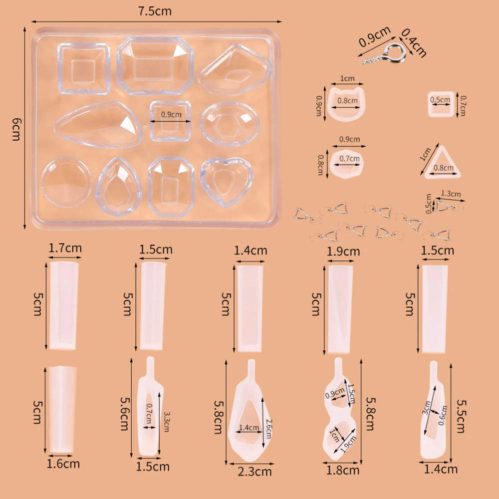 Features: Quality Silicone Resin Molds: Our diy casting silicone resin molds are made from premium-grade silicone, ensuring durability and long-lasting use for all your jewelry casting projects. Versatile Jewelry Making Mold Kit: This comprehensive kit includes a variety of jewelry casting silicone molds, allowing you to create stunning resin jewelry pieces in various shapes and sizes. Easy-to-Use and Reusable: Our Epoxy Resin Silicone Mould Kit features a user-friendly design, making it effortless to release your finished creations. The molds can be reused multiple times, saving you time and money. Perfect for DIY Crafts: Whether you're a beginner or an experienced maker, our Reusable Stencil DIY Craft Making Tool Kit is ideal for creating unique and personalized accessories. Let your creativity shine with this versatile kit. Thoughtful Gift for Craft Enthusiasts: Our DIY Casting Mould Kit makes a perfect birthday or Christmas gift for her. It provides all the necessary tools and accessories for handmade craft making, allowing your loved ones to explore their creativity and create beautiful DIY accessories. Specification: Material: Alloy, silicone Buckle Size: 1.3*0.5cm Screw Size: 0.9*0.4cm Notes: 1. Due to the lighting effects and shooting angles, there is a color difference in the product, please understand. 2. Due to manual measurement, there is a tolerance in the product size.
