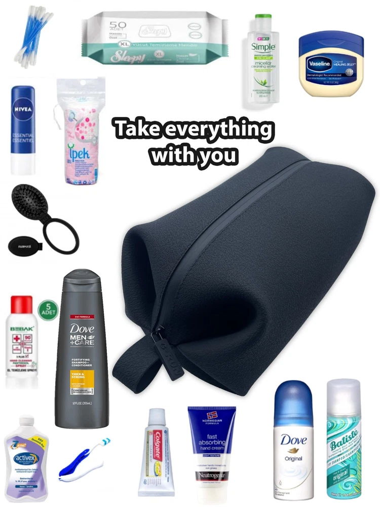 Silicone Dopp Kit: Men’s Toiletry Travel Bag Silicone Dopp Kit: Men’s Toiletry Travel Bag Introducing the Silicone Dopp Kit, a modern twist on the classic men’s toiletry travel bag. Crafted from premium, high-quality silicone, this dopp kit is designed to be both stylish and functional, making it the perfect companion for all your travel needs. Key Features: Durable and Waterproof: Made from 100% silicone, this men’s toiletry travel bag is built to withstand the rigors of travel. Its waterproof material ensures that your toiletries stay dry and protected, even in the most humid environments. Easy to Clean: The smooth silicone surface is not only resistant to spills and stains but also incredibly easy to clean. A quick wipe with a damp cloth is all it takes to keep it looking new. Flexible and Lightweight: Unlike traditional men’s toiletry travel bags, the silicone construction offers unparalleled flexibility, allowing it to fit easily into any suitcase or backpack without adding extra weight. Spacious and Organized: With a roomy interior and multiple compartments, this dopp kit provides ample space to organize all your grooming essentials. Keep your items neatly arranged and easily accessible wherever you go. Eco-Friendly Choice: Silicone is a sustainable material that is both reusable and long-lasting. By choosing this dopp kit, you're making an environmentally conscious decision without compromising on style or functionality. Design and Aesthetics: The Silicone Dopp Kit boasts a sleek, minimalist design available in a variety of colors to suit any taste. Its modern look is complemented by a sturdy zipper closure and a convenient carrying handle, making it as fashionable as it is practical. Perfect For: Frequent Travelers: Ideal for those who are always on the go and need a reliable, durable solution for their toiletries. Outdoor Enthusiasts: Perfect for camping, hiking, or any outdoor activity where a waterproof and easy-to-clean men’s toiletry travel bag is a must. Eco-Conscious Shoppers: Great for anyone looking to reduce their environmental impact with a sustainable and reusable product. Upgrade your travel gear with the Silicone Dopp Kit – the perfect blend of style, functionality, and sustainability for the modern man. MEET THE MENS TRAVEL KIT - Looking for the ideal companion? Meet the Men Toiletry Travel Bag, the ultimate dopp kit for those looking to carry the essentials. MEN'S TOILETRY TRAVEL BAG - leather-like silicone to give it a bolster in durability, keeping it easy to clean with a high quality zipper. WATERPROOF TOILETRY BAG FOR MEN - The high-quality silicone material will help minimize water spills inside the dopp kit. TRAVEL TOILETRY BAG MEN - Away Toiletry Bag is a medium dopp kit for carrying a number of essential grooming items like toothbrush, toothpaste, comb, soap and razor. STORAGE SIZE - Dopp kit men 9" (L) x 5" (W) x 5" (D) / 22.9cm (L) x 12.7cm (W) x 12.7cm (D) giving it enough room for the basics mens travel toiletries when you travel. Need more space? Check out the Large Size.