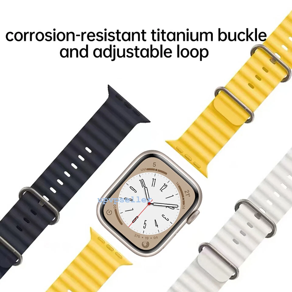 For Apple Watch Ocean Band Sports Strap iWatch Ultra Series 8 7 6 SE 44/45/49mm For Apple Watch 38mm/40mm/41mm use same watch band , 42mm/44mm/45mm/49mm use same watch band Description: The Ocean Band is molded in a high performance elastomer with a tubular geometry allowing it to stretch for a perfect fit, even over a wetsuit. The corrosion-resistant stainless steel buckle and adjustable loop secure the band during high-speed water sports. Also suitable for wearing while doing other sports, or daily using. Material: Silicone One Size: Watch Band fits 130–200mm (5.12"-7.87") wrists. Compatible With: For Apple Watch Ultra / Series 8 / Series 7 / Series 6 / Series 5 / Series 4 / Series 3 / Series 2 / Series 1 / SE / Package Includes: 1 x Watch Band or 1x Clear Cover (Please Kindly Note The Apple Watch is Not Include) Payment Delivery details About feedback About us Contact us Payment PayPal only Only ship to PayPal confirmed address. Delivery details 1. All returns require a Return Merchandise Authorization (RMA) number to avoid any delays. 2. All product needs to remain in its original state, carefully rewrap the products if open. 3. Any return for a refund may be subject to a 15% restocking fee if opened. 4. Products that are not eligible for return and will be sent back to you at your cost and expense if received by us: • Any product not purchased from us • Any product that is returned without all original packaging and accessories • Any product that exhibits physical damage 5. We only cover shipping cost for USPS Postal Service. About feedback About us Working time:Monday to Friday, usualy reply in 24 hours on working day Contact us Any queries or issues incurred, please feel free to contact us Via Ebay message we are always here ready for help. Pls do’nt leave negative feedback without asking for help. Highly appreciated your POSITIVE feedback & 5 star DSR. Enjoy shopping!