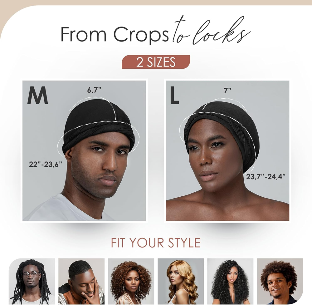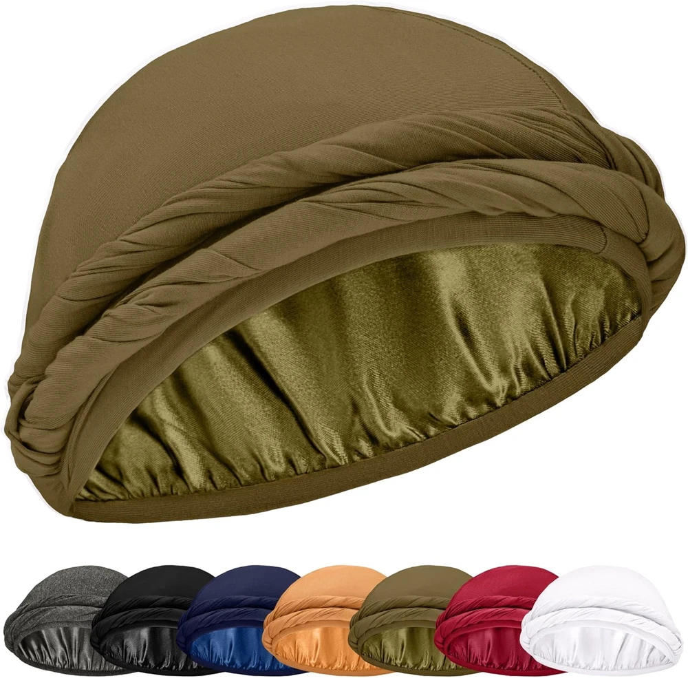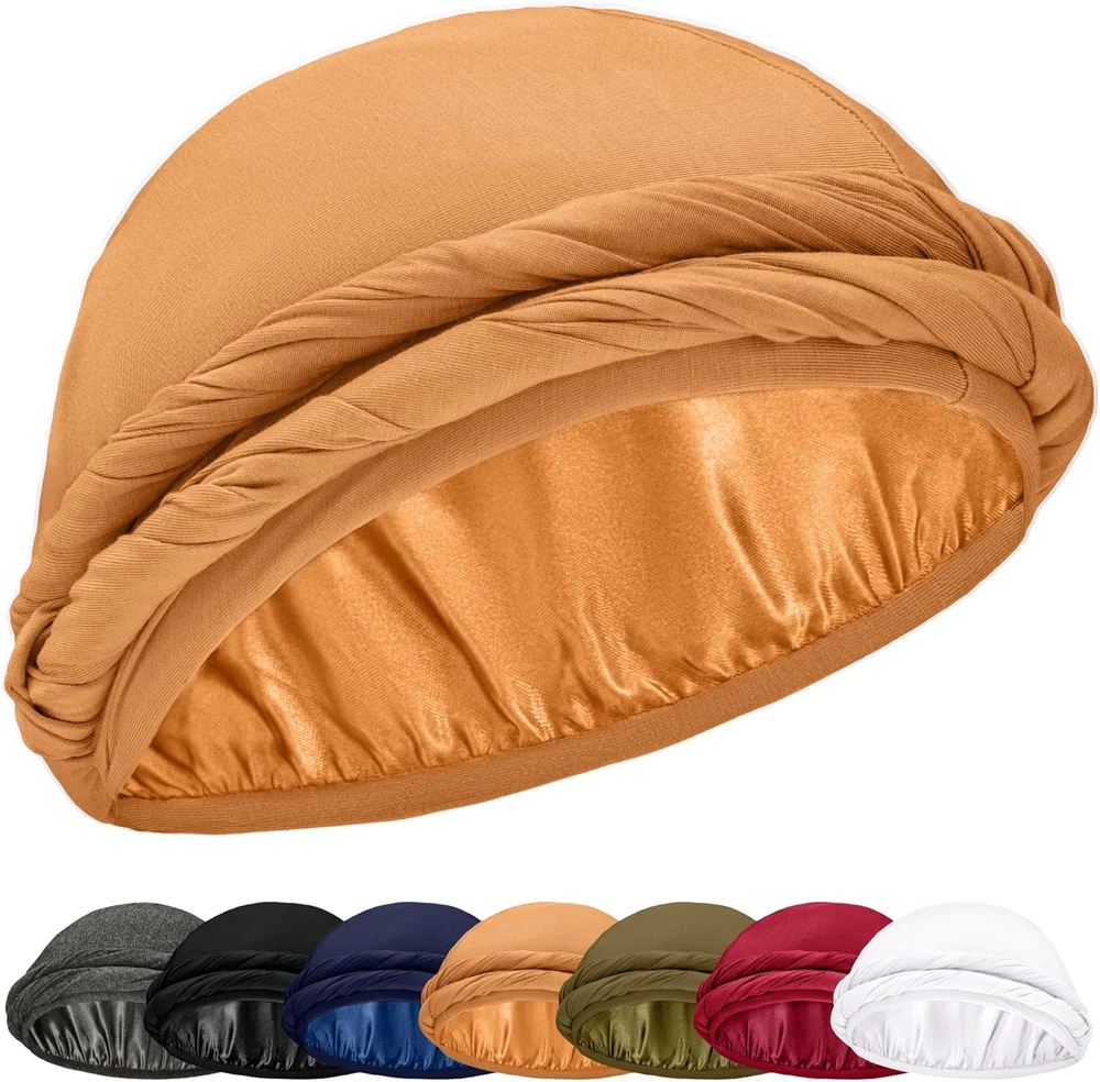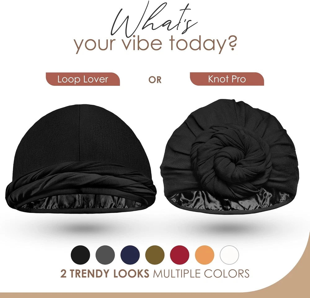 Product Description Silky Smooth Protection Silky Smooth Protection Slide into effortless elegance with our perfect fit turban. Crafted from silky satin and breathable bamboo, it promises a snug, hassle-free fit. Ready-tied for convenience making it perfect for nighttime rest or daytime flair. The video showcases the product in use. The video guides you through product setup. The video compares multiple products. The video shows the product being unpacked. Always a Snug Fit Always a Snug Fit I'm amazed by how effortlessly this bonnet fits every time! Whether i'm sleeping or out for a morning run. It's the perfect companion that keeps my hair in check and looks good doing it. The video showcases the product in use. The video guides you through product setup. The video compares multiple products. The video shows the product being unpacked. My Stylish Hair Savior My Stylish Hair Savior On those tough hair days, this turban is my secret weapon. Not only does it shield and tame my unruly locks, but it also adds a stylish flair to my look, effortlessly. The video showcases the product in use. The video guides you through product setup. The video compares multiple products. The video shows the product being unpacked. Premium Headwear Add to Cart Add to Cart Add to Cart Add to Cart Customer Reviews 4.2 out of 5 stars 168 4.3 out of 5 stars 104 4.5 out of 5 stars 109 4.3 out of 5 stars 1,473 4.5 out of 5 stars 109 Price $14.99 $ 14 . 99 $14.99 $ 14 . 99 $14.99 $ 14 . 99 $14.99 $ 14 . 99 — Satin ✔ ✔ ✘ ✔ ✘ Adjustable ✔ ✔ ✘ ✘ ✘ Material Bamboo & Satin Bamboo & Satin Bamboo & Chiffon Bamboo & Satin Bamboo & Chiffon Double Layer ✔ ✔ ✔ ✔ ✔ Loop ✘ ✘ ✔ ✔ ✔