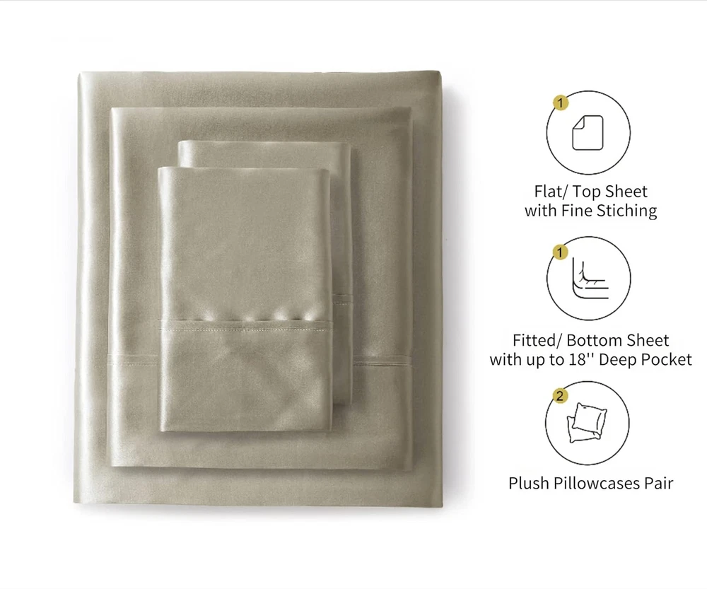 Store New Arrivals Add to Favorite View Feedback Contact Fast deliveries to the customer's home Quality customer service John Make the customers happy! Silk Satin Sheets, Queen Size Satin Bed Sheet Set with Deep Pockets, Cooling Soft and Hypoallergenic Satin Sheets Queen - Taupe Description High Quality Fabric: Crafted from 400 thread count satin fabric, these sheets offer a luxurious, silky feel reminiscent of 5-star hotel bedding. They provide an elegant look while being more durable and cost-effective compared to real mulberry silk sheets. Skin and Hair Benefits: Satin sheets are designed to be gentle on both skin and hair, helping to prevent hair breakage and reduce facial and neck wrinkles. The soft, cool texture enhances your sleep experience throughout the year. Wide Range of Choices: Available in 6 common sizes and 17 beautiful colors, from warm to cool tones, these sheets are versatile enough to match any bedroom decor. The fitted sheet features all-around elastic and deep pockets that accommodate mattresses up to 14" thick, ensuring a snug fit. Versatile Usage and Gift Idea: Suitable for all ages, these satin sheets are a great addition to any bedroom and make a thoughtful gift for parents, friends, or anyone who appreciates a touch of luxury. They enhance the sleeping experience with their elegant feel and comfortable texture. Easy Care: These sheets are low-maintenance and easy to care for. They are machine washable in cold water and tumble dry on low heat. The satin sheets stay smooth and fresh, even after multiple washes. Product Description Impeccably crafted with a touch of refinement, our beddings embody the perfect fusion of craftsmanship and elegance, elevating your sleep to a whole new level of luxury. Delicately soft to the touch, they provide a refreshing coolness and exceptional durability, ensuring you a truly restful night's sleep that you can rely on. Style Traditional Weave Type Satin Pattern Solid Country of Origin China Theme Space Cartoon Character Solid Number of Pieces 4 Unit Count 1 Count Pillowcase Quantity 2 Material Satin Item Display Dimensions 17.72 x 1.38 x 13.39 x 1.38 inches Age Range (Description) All Ages Seasons All Included Components 1 Fitted Sheet, 2 Pillowcases, pillow cover, bed sheet, 1 Flat Sheet Closure Type Elastic Item dimensions L x W x H 11 x 3 x 10 inches Item Weight 2.77 pounds Sham Quantity 2 Special Feature Lightweight, Hypoallergenic, Fade Resistant Color Taupe Thread Count 400 Global Trade Identification Number 61346454299500 Product Dimensions 11 x 3 x 10 inches Product Care Instructions Machine Wash Size Queen ABOUT US We offer the best prices around on high quality products. Our E-store includes media such as books, movies, music and games while offering electronics, toys, sporting apparel, clothing, tools, general home, garden items and more. SHIPPING We are always working hard to ensure your package arrives as soon as possible. Please understand that some factors like weather, high postal traffic, and the performance of shipping companies are outside of our control. We offer free shipping to the lower 48 states and ship within 2 business days of payment, usually sooner. We do not accept P.O. Boxes. Please provide a physical address. For shipping outside of the continental USA, we only use eBay's Global Shipping Program. The item is shipped to KY and then sent to the rest of the world. International customers are responsible for all duties and taxes. Continue to 'check out' to calculate costs for shipping the item to your country. Messages regarding eBay's Global Shipping Program MUST be directed at eBay EXCLUSIVELY. RETURNS We offer a 30-Day Return Policy on items in which you are not completely satisfied with. You have the option of a full-refund or an exchange of the item. No returns are available on items shipped outside of the USA PAYMENT We accept PayPal. CONTACT US This page content is yet to come Please ad us to your favorite seller and visit again later Thank You CUSTOMER SATISFACTION We try our very best to make sure every customer is completely satisfied. If there's a problem, message us! We're happy to help. WE ACCEPT