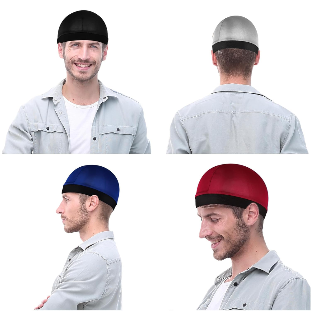 [Package Included] The package contains 4 pcs of satin durags for men in black, silver, navy blue, and red. This variety ensures you have enough options for daily wear and change, and it's also a great choice for sharing with friends or family. [Premium Material] Our wave cap is made from high-quality polyester and nylon material that is stretchy, cool, and breathable. This fabric maximizes moisture retention in your hair without adding extra heat, making it perfect for achieving 360, 540, and 720 waves. [Elastic Bonnet for Men] The head circumference of this bonnet for men measures 19.69 inches/50 cm, and it can be stretched to fit most men's head sizes. The loose elastic band ensures that it won't mark your forehead like a regular bonnet, providing a comfortable fit that stays in place all night. [Keeps the Waves Flat] When you add double compression to the doo rag to keep the waves flat, our elastic band won't slip off while you sleep. This feature helps speed up the wave-making process, ensuring your waves stay intact and well-defined. [Wide Application] Our silk durag has a fashionable design, making it suitable for daily wear, bathing, sleeping, make-up, cooking, and sports. Whether it's cold winter or hot summer, this silk cap for sleeping offers the most comfortable experience. Additionally, the satin bonnet can fix the shape of your hair, eliminate frizz caused by friction, and protect damaged hair, making it a versatile accessory for any occasion. YUXIANLB Silky Wave Cap, Satin Silk Hair Bonnet for Sleeping, Elastic Band Durags Wave Caps for 360 540 720 Waves, Shower Caps Hair Wrap Bonnet for Men Women -4 Pack Specifications: Category: Hat Color: Black, silver, navy, red Material: Polyester, nylon Function: Sports hat, wig hat, sleeping hat, comfortable, high elastic Height: 7 inches/17.8 cm Head Circumference: 19.69 inches/50 cm Hat Size: 9.84 × 7.01 × 0.2 inches/25 × 17.8 × 0.5 cm Packing List: 4pcs × hat
