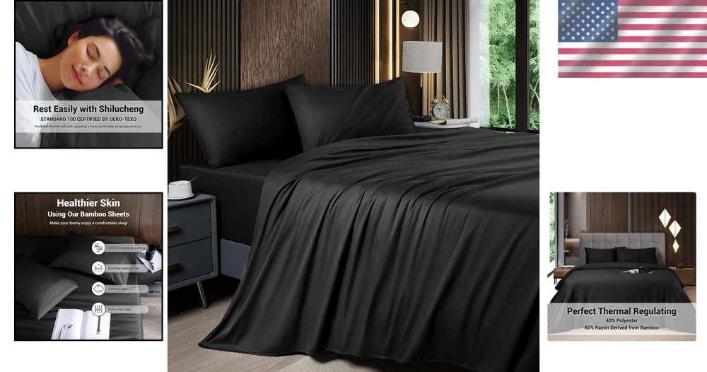 Silky Soft 4-Piece California King Bed Sheets - Breathable & Deep Pocket Design ‹ › ‹ › ‹ › ‹ › ‹ › ‹ › ‹ › ‹ › ‹ › Silky Soft 4-Piece California King Bed Sheets Experience unparalleled comfort with our luxurious Cal King sheet set that will elevate your sleep experience to a realm of pure bliss. These sheets are meticulously crafted for those who appreciate the finer things in life. Product Features: Materials: 60% Rayon Derived from Bamboo and 40% Polyester Dimensions: Includes 1 Flat Sheet (108" x 102"), 1 Fitted Sheet (72" x 84" x 16"), 2 Pillowcases (20" x 40") Silky Soft Feel: This unique blend provides a remarkably soft and supple texture that feels like silk against your skin. Temperature Regulation: Designed to absorb and dissipate heat, these sheets keep you cool all night—perfect for hot sleepers and those with night sweats. Deep Pocket Design: Fits mattresses up to 16" deep with ease, ensuring that the sheets stay securely in place. Durability: Machine washable and easy to maintain—these sheets are made to last while keeping their luxurious feel. Why Choose Our Bed Sheets? Indulge in affordable luxury each night with our Silky Soft 4-Piece California King Bed Sheets. Crafted from high-grade materials, they offer more than just beauty; they provide remarkable comfort and durability. The innovative design combines style and practicality, making it a perfect addition to your bedroom. Enjoy a restful night's sleep nestled in sumptuous softness that won't slide away no matter how much you toss and turn. Plus, you can confidently bring them into your home knowing they are Standard 100 by OEKO-TEX certified, ensuring your bedding is free from harmful substances. Make bedtime a serene experience by treating yourself to these exquisite sheets today, and awaken refreshed and renewed each morning! Shipping Free & Fast Shipping - We offer free shipping to most of the USA with a normal delivery time of 3-7 days. However, due to the current situation, additional delivery time (up to 3 weeks) may be required for some items. Alternative Carriers - We may use alternative carriers (e.g. USPS, FedEx, UPS, etc.) to ensure your package arrives safely and on time. Due to the use of multiple carriers, we are unable to provide a tracking number automatically. Handling Time - Orders are processed and shipped within 1-2 business days of receiving cleared payment. Shipping Restrictions - Shipping to Alaska, Hawaii, Puerto Rico, Guam, and other US territories may incur shipping charges or delivery restrictions. Please contact us before ordering, or your order can be refunded/cancelled. State Restrictions - There may be restrictions based on your state of purchase. For example, certain items may not be shipped to California due to state regulations. Contact for Tracking Updates - If you require tracking updates or have any concerns about the delivery of your order, please feel free to contact us, and we will be happy to assist you. Return 30-Day Hassle-Free Returns - We want you to be completely satisfied with your purchase. If you are not, you can return the item within 30 days of receiving it for a full refund or exchange. Easy Return Process - To start a return, simply contact us and we will provide you with a prepaid return shipping label and detailed instructions. Restocking Fee - There are no restocking fees for returns. However, the buyer is responsible for return shipping costs if the return is not due to a seller's error. Refund Processing Time - Refunds will be processed within 5 business days of receiving the returned item in its original condition. Payment We accept all major credit cards, PayPal, and Apple Pay for your convenience. Your payment information is secure and encrypted to ensure a safe and seamless transaction. Please complete your payment within 3 days of purchase to avoid any delays in shipping. Feedback Your feedback is extremely important to us. We strive to provide the best products and customer service possible. If you are satisfied with your purchase, please take a moment to leave us a positive review. If you have any concerns or issues with your order, please contact us before leaving negative feedback. We are committed to resolving any problems and ensuring your satisfaction. Contact Us If you have any questions or concerns, please feel free to reach out to our customer support team. You can contact us through the eBay messaging system. We are available Monday to Friday, 9:00 am to 5:00 pm EST, and we will do our best to respond to your inquiry within 24 hours. Buy it now and enjoy a pleasant shopping experience! UPC: Not Set Item Length: Not Set Item Width: Not Set Unit Quantity: 1 count Material: Rayon,60% Rayon Derived from Bamboo,40% Polyester Character: Not Set Theme: Modern Features: Breathable,Cooling Care Instructions: Machine Wash Department: Adults Room: Bedroom Labels & Certifications: Not Set Brand: Unbranded Size: California King Type: Sheet Set Color: Black Pattern: Solid MPN: Not Set Character Family: Not Set Thread Count: 1800 Country/Region of Manufacture: Not Set Style: Modern Shape: Rectangular Model: Not Set GSM (Grams per Square Meter): Over 800 Product Line: Not Set Unit Type: Unit