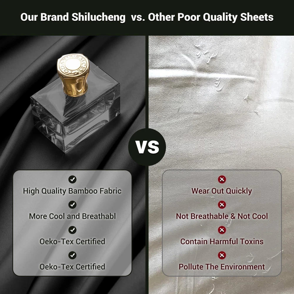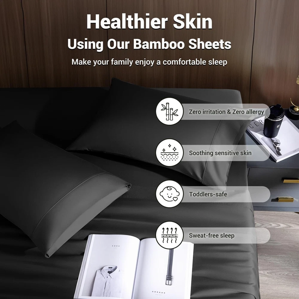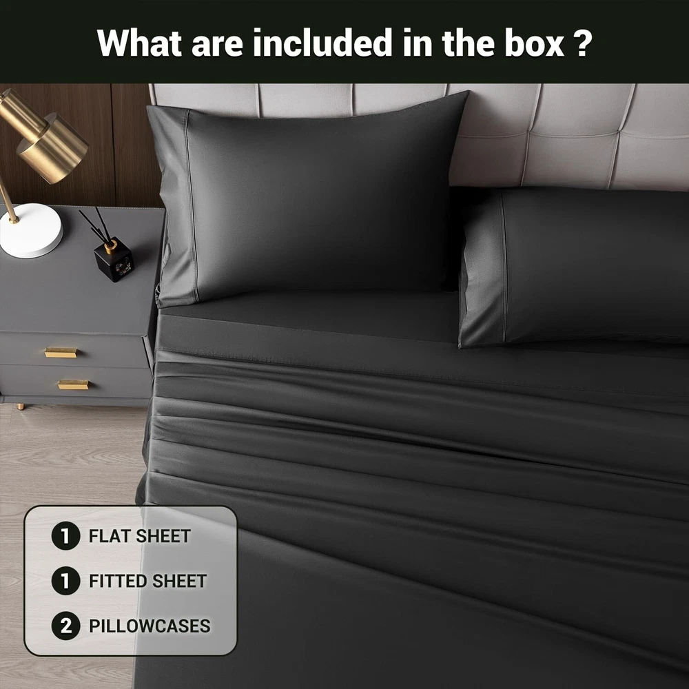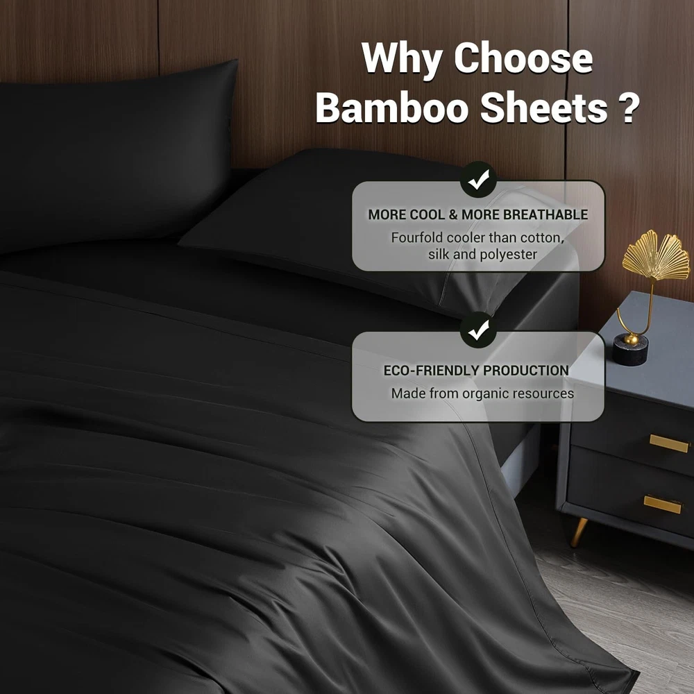 Material: Rayon, 60% Rayon Derived from Bamboo, 40% Polyester Package Dimensions: 12.87 X 10.59 X 5.08 Inches Product Care Instructions: Machine Wash Shape: Rectangular Care Instructions: Machine Wash GSM (Grams per Square Meter): Over 800 Number Of Pieces: 4 Fitted Sheet Pocket Depth: 16 Inches Seasons: Summer Age Range (description): Adult Room: Bedroom Department: Adults Item Weight: 3.91 Pounds Pattern: Solid Size: California King Theme: Modern Closure Type: Envelope Fabric Type: 60% Rayon Derived From Bamboo And 40% Polyester Color: Black Brand: Unbranded Style: Modern Included Components: 1 Flat Sheet , 1 Fitted Sheet ,2 Pillow Cases Type: Sheet Set Weave Type: Twill Special Feature: Cooling, Breathable Pillowcase Quantity: 2 Unit Count: 1 Count UPC: Does Not Apply Features: Breathable, Cooling Batteries Required: No Thread Count: 1800 gtin13: Does Not Apply