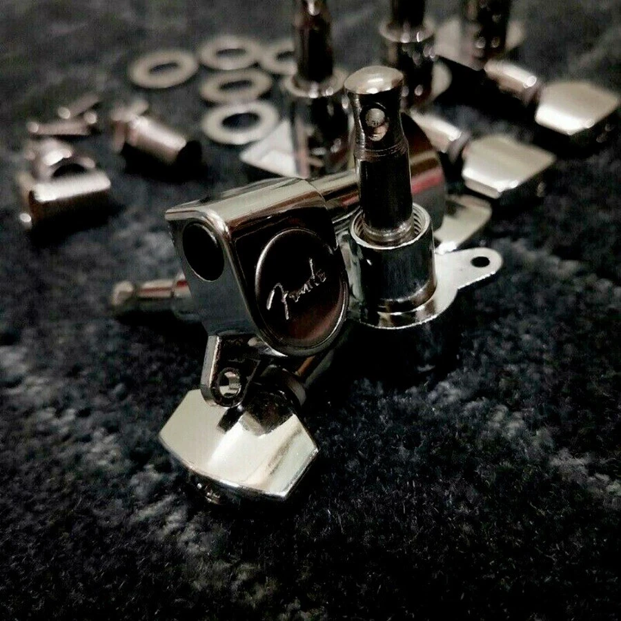 Silver 6R Tuners Tuning Pegs Keys Machine Heads for Fender Electric Guitar-arc Features: 100% new high quality and testing is fine. Fit for fender strat,fender tele electric guitar. The product comes with logo engraved on the back. Set of 6 right quality silver machine heads for fender strat,tele electric guitar. Quality sealed machine heads. Heavy duty internal gear. Color: Silver. Package Include: 6 right guitar machine heads 6 x ferrules 6 x screws 6 x threaded bushings