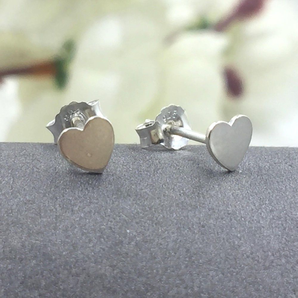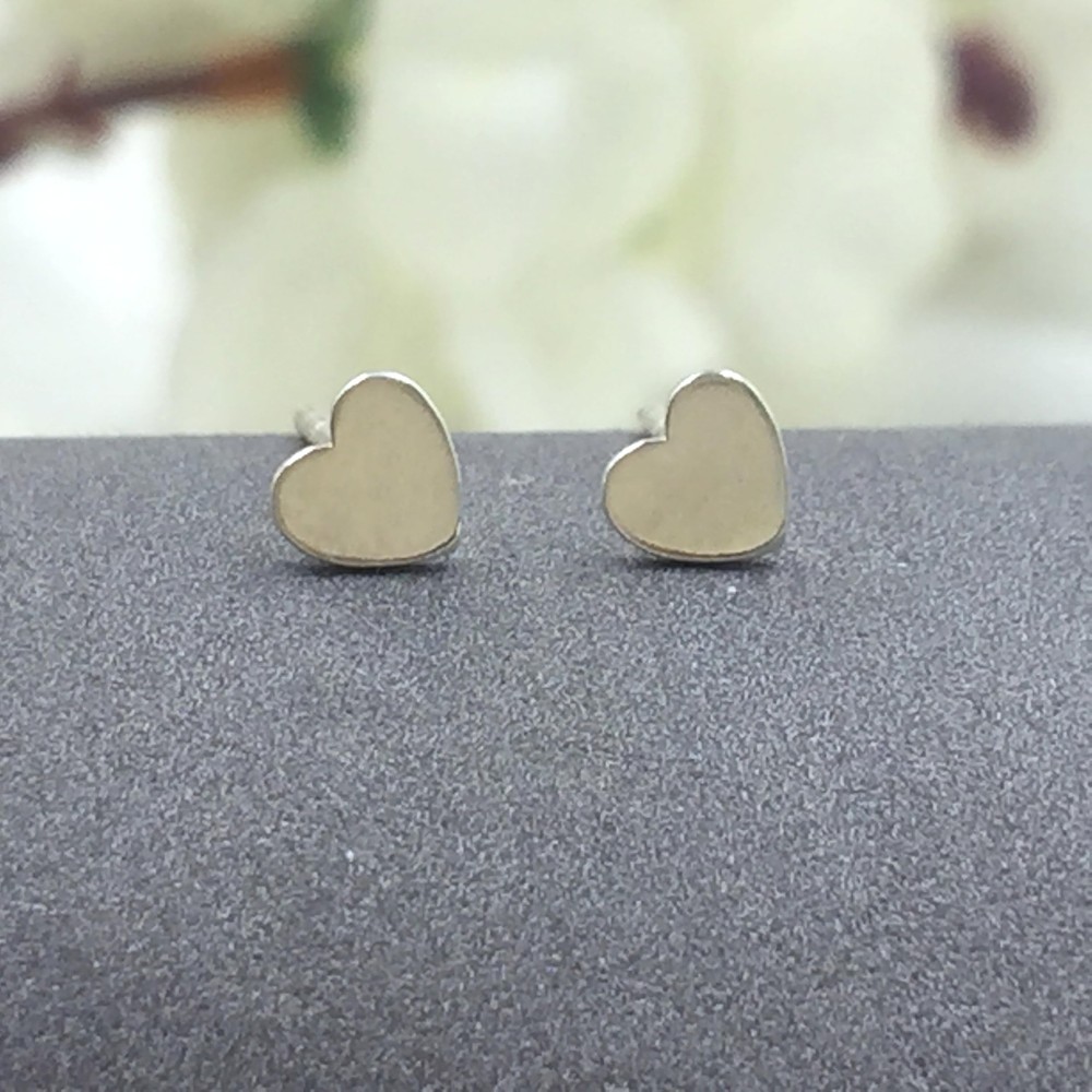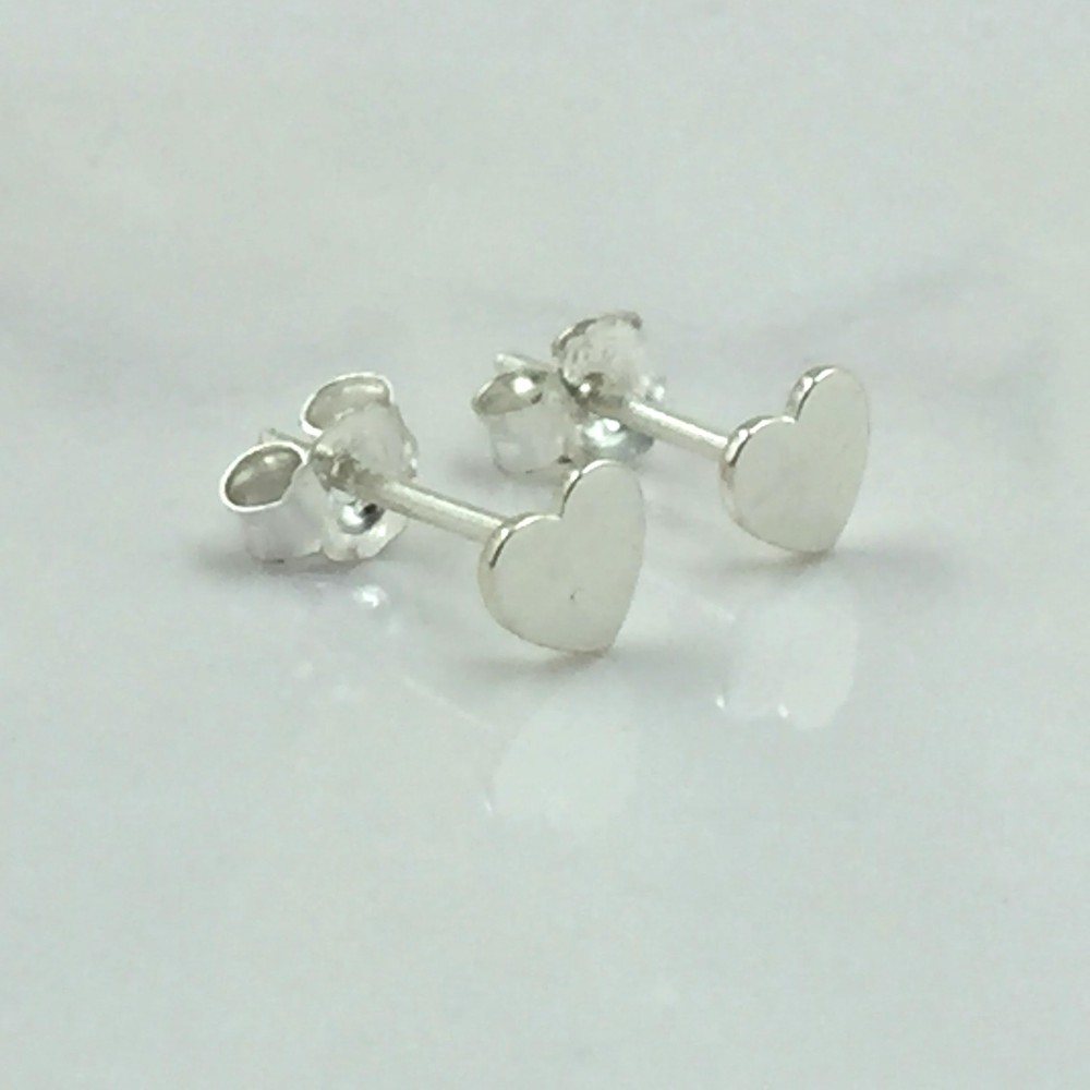 Silver 925 Tiny Heart Stud Earrings Unisex Flat Little Heart Studs