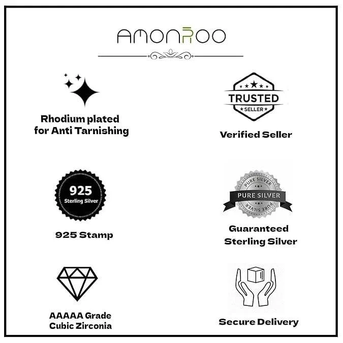 PRODUCT DETAILS : Made of 925 Sterling silver, Anti tarnish Hypoallergenic - Perfect for sensitive Skin. *****Please note, this product is handmade, so each product is truly slightly unique to another. The colors and size might slightly differ from the photo due to different display settings. CARE INSTRUCTIONS : Wipe your jewellery with the soft cloth after every use, store it in a flat box to avoid accidental scratches. Keep sprays and perfumes away from your jewellery, do not soak it in water. CERTIFICATION: All our jewellery is 925 Stamped and comes with an Authenticity Certificate WARRANTY: AMONROO offers a manufacturer's warranty* 12 months from the date of purchase . *T&C apply