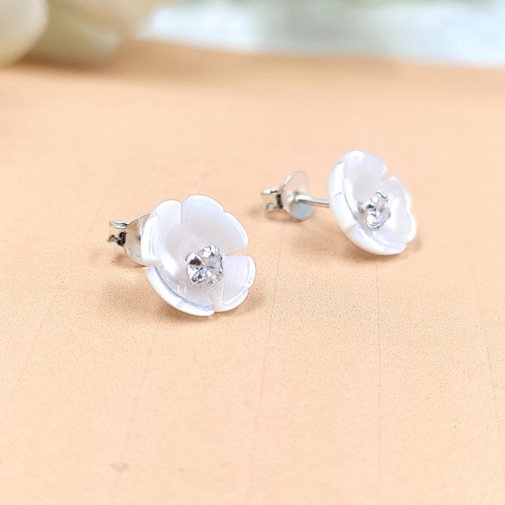 Silver CZ Floral Stud Earrings in 925 Sterling Silver, Perfect Bridesmaid Gift