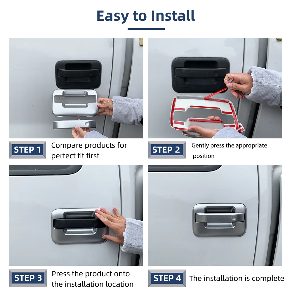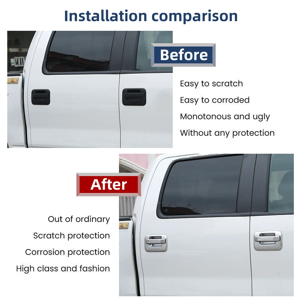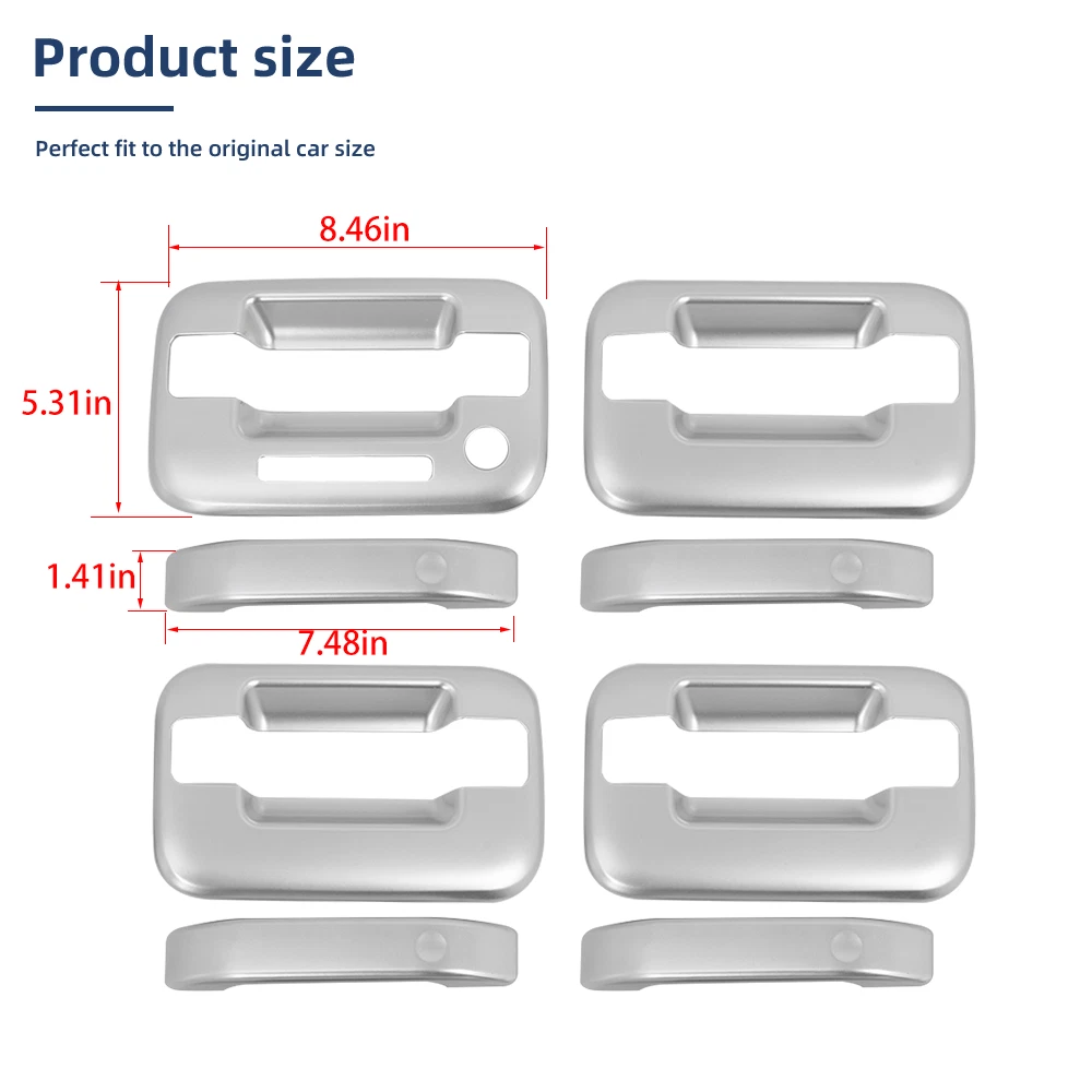 • Compatible models: For Ford F150 2004-2014 • Color: Silver • Material: High-Quality ABS • Packaging includes: 4pcs Exterior Door Handle Bowl Cover Trim Bezels • 100% Brand New & Free shipping & free returns & 90 Days Warranty 8Pcs Silver Car Door Handle Covers Trim For 2009-14 FORD F150 Raptor Crew Cab Feature: ✔ 100% brand new, more original car feeling. Made of high-quality ABS, Never Rust, Corrode or Peel. ✔ The item can cover existing scratches and prevent from scratch and abrasion. ✔ Easy installation-With Double-sided adhesive tape, pls cleaning surface, heat the tape by a hair dryer for better adhesion,and press it almost 1 minute. ✔ Provides a high class and fashion decor style, change the ordinary interior and exterior design of the car and add unique colors. Fitment: • For Ford F150 2004-2014 Specifications: • Color: Silver • Material: High-Quality ABS Package Include: • 4pcs Exterior Door Handle Bowl Cover Trim Bezels Installation Instructuion: • Please Ensure You Have Cleaned the surface of your car Before Install ! • Slightly heat 3M with a hair dryer before pasting effect better • Pressing gently for about 1 minute after Pasting Attention: • Please check your Car Model, reference our pictures before you purchase. • Within 48 hours after the product is installed, it cannot touch water,oil or dust. • Always buy with confidence, if you are not satisfied with this item, please let us know first by sending message or e-mail. We will reply to you within 24 hours and offer you our best services. We will offer a replacement, or you can return it to get a full refund in 30 days. Payment Return Shipping About Us FAQ Payment Payment Information Immediate payment is required upon selecting "Buy It Now" or upon checking out through the basket. We only accept payment via PayPal. When making a payment to us via PayPal, you can use your existing PayPal account. No financial information, passwords, credit card numbers or personal information other than your name, email address and shipping address is received by us. Although PayPal is extremely secure, Jecar is not responsible for protecting the personal information you share with them. You are encouraged to read the related PayPal policies carefully. Promotional:Please note that website discounts, coupons, and gift cards are not valid for use on eBay. Return -We hope that you will be pleased with your order. However, in the event that your order is not suitable, we are happy to accept returns for a refund (excluding postage) or an exchange with 30 days of purchase. -It is very important that you include a note with your eBay ID, name, reason for returning and return requirements. -In the event of a return, the customer is responsible for postage costs. It is highly unlikely that a product may be faulty, however in the case returning postage will be refunded on arrival. Exchange and Refund Process Returns are handled on a daily basis therefore your exchange or refund will be posted on the day that your return arrives; you will also receive an email to confirm this. Exchanges will be posted to the address associated with the original order (unless otherwise stated) and refunds will be issued to the original payment method only. PLEASE NOTE: All products that have been used or original packaging is incomplete will be charged 25% restock free Shipping Delivery Information: All orders are dispatched within 1~3 working day upon receipt of payment. This is an insured and tracked service with a transit time of 1-5 working days depending on postal service selected. Delivery times may vary, especially during peak periods. We currently ship to the United States. About Us Welcome! Welcome to TESIN, one of the fastest-growing online retailers of automotive parts and accessories today! We're proud to offer all of the leading brands in performance gear, interior accessories, and style upgrades, at prices suitable for any budget. Most importantly, we back every one of our products with the best one-on-one customer service you'll find anywhere. Customer Service Forget about those faceless online stores that hide behind hard-to-find contact info and robotic phone menus. At TESIN, serving our customers is priority number one. That's why, when you give us a call or chat with us online, you'll be communicating with a real person right here in Illinois. Whether you have questions about a particular product, want to place an order, or need to return an item, our experienced sales and service staff is ready to take your call. After all, YOU the customer are the most important part of our business! Don't just take our word for it, either. TESIN is proud to be a Better Business Bureau-accredited business with an A+ rating, a Google Trusted Store, and a Bizrate Customer Certified Store. With these kinds of credentials, we're a company you can count on. Customer Reviews If you want the most real, road-tested info about one of our products, don't take it from us - let your fellow auto enthusiasts share their experiences with our Customer Reviews. All of our Customer Reviews are written by real Jecar customers who have used our products and want to share their opinions. From fit and finish to performance and durability, our Customer Reviews will help you decide on the perfect parts for your vehicle. FAQ Frequently Asked Questions Q: How do I order? A: You can place your order online at any time using eBay secure shopping cart. Q: How do I pay for my order? A: We accept Visa, Mastercard, Discover, American Express, PayPal. Q: How will my order be shipped? A: We offer Ground Shipping for US orders ONLY (including Alaska and Hawaii). Q: What are your shipping and handling rates? A: Shipping and handling rates vary by product. Almost all of our items shipped within the continental U.S. come with Free Shipping, however, due to weight and occasional handling fees some of our products have a shipping charge. All shipping fees will be di