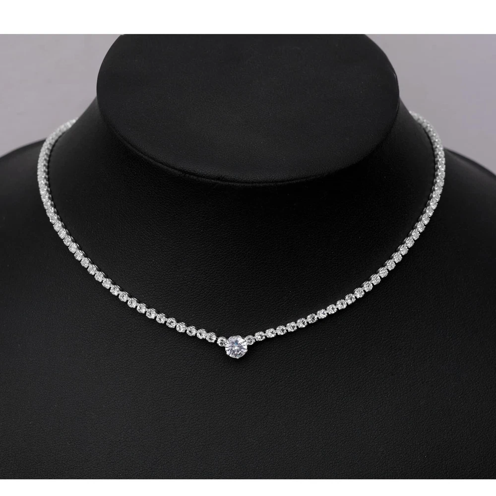 Silver Choker Necklace Earrings Tennis Bracelet Set Cubic Zirconia Crystal Wedding Jewelry Sets for Bride Bridesmaid Prom Formal Costume Accessories Product Details Package Dimensions : 4.25 x 3.15 x 1.22 inches; 1.45 ounces Department : womens Date First Available : August 29, 2023 Manufacturer : Floralseas Brand, Seller, or Collection Name: Floralseas Metal: silver plated brass Material: Silver Plated Brass Gem Type: Cubic Zirconia Setting: Prong Setting Clasp: Lobster Clasp The Floralseas Wedding Jewelry Set, ideal for bridesmaids or brides, boasts sparkling CZ stone, making it a timeless addition to any jewelry collection. This elegant set, comprising a necklace, earrings, and bracelet, can be paired with both classic casual and formal attire.