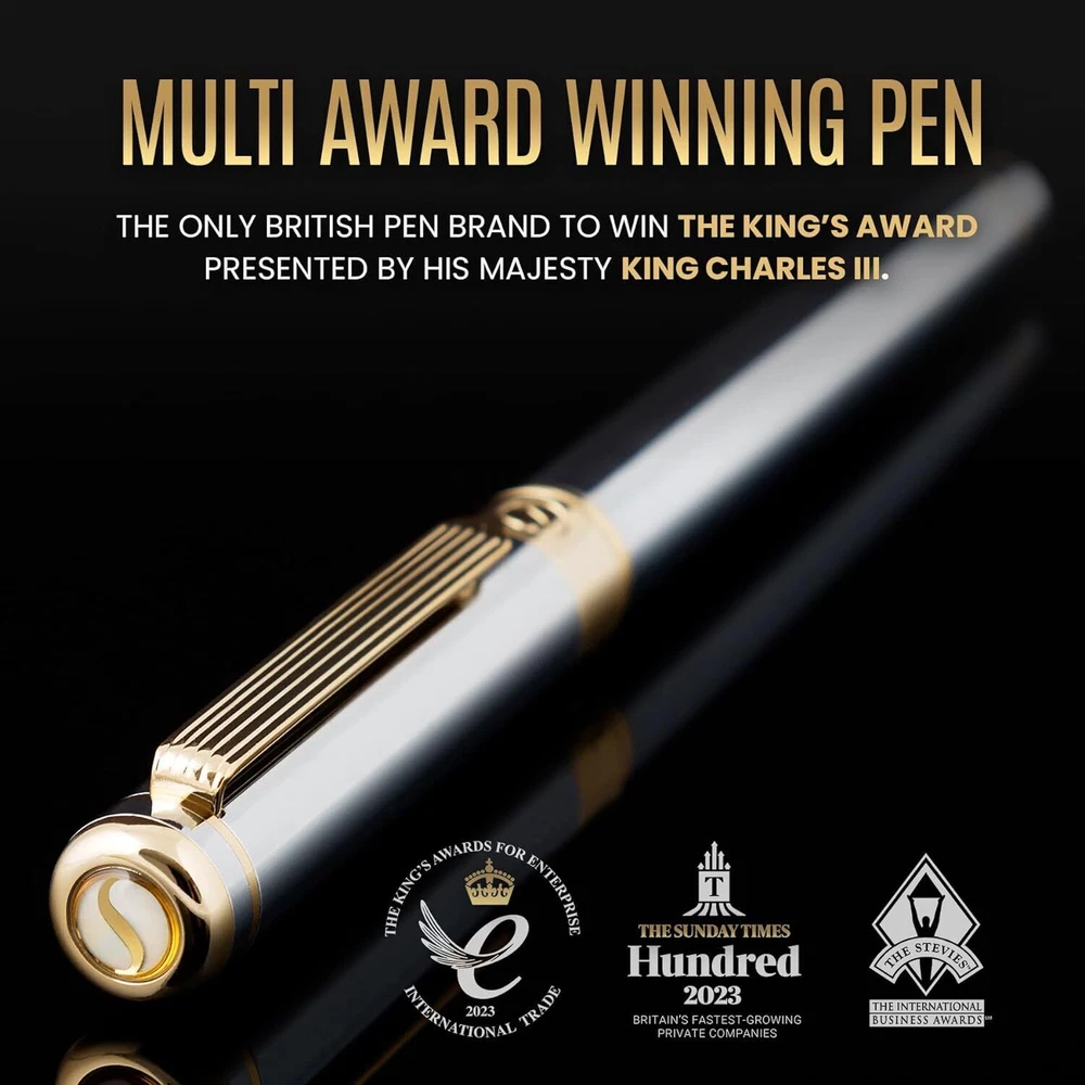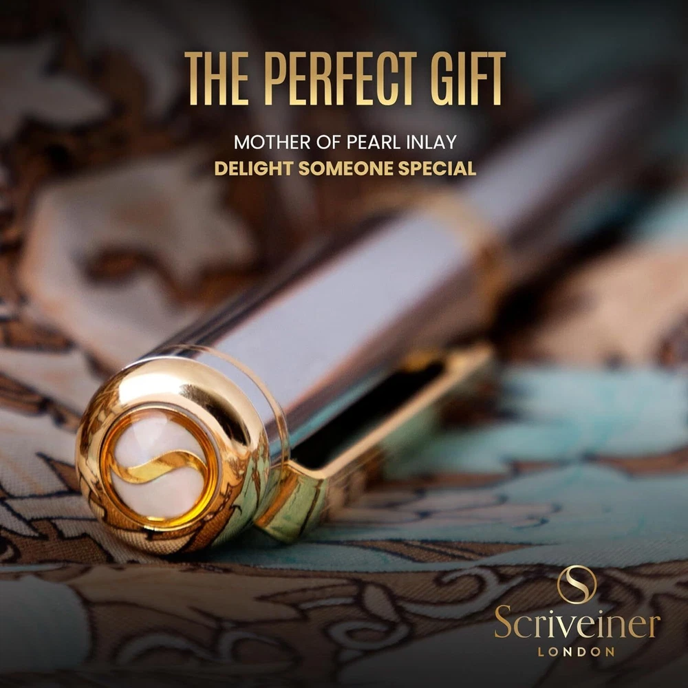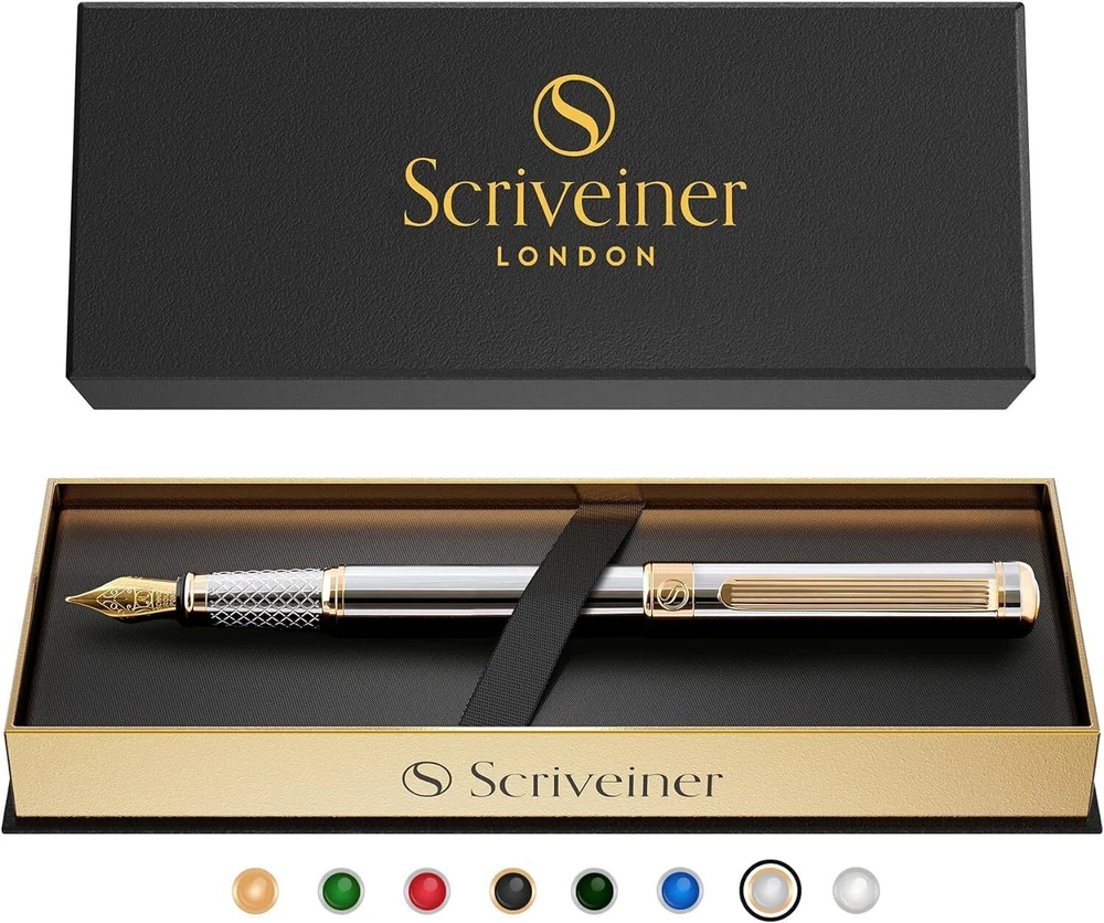 Silver Chrome Fountain Pen - Stunning Luxury Pen with 24K Gold Finish, Schmid