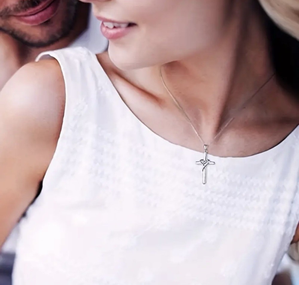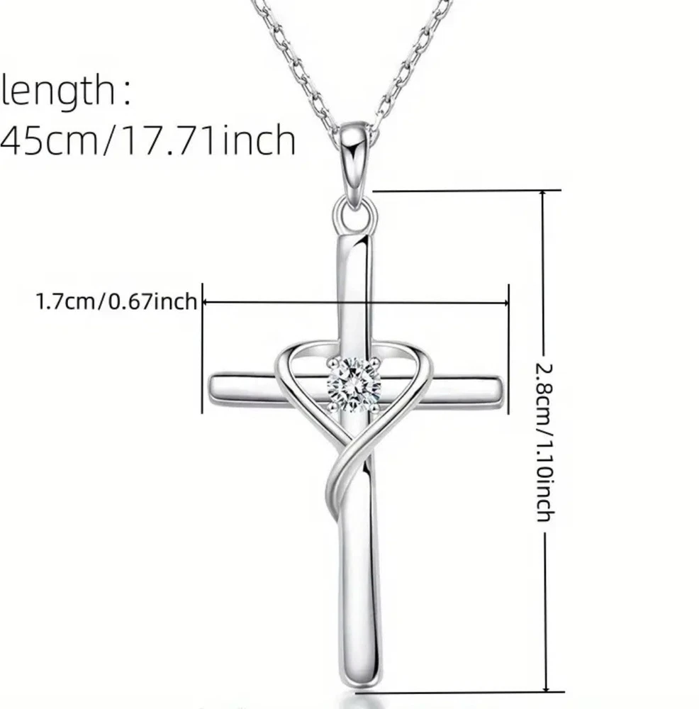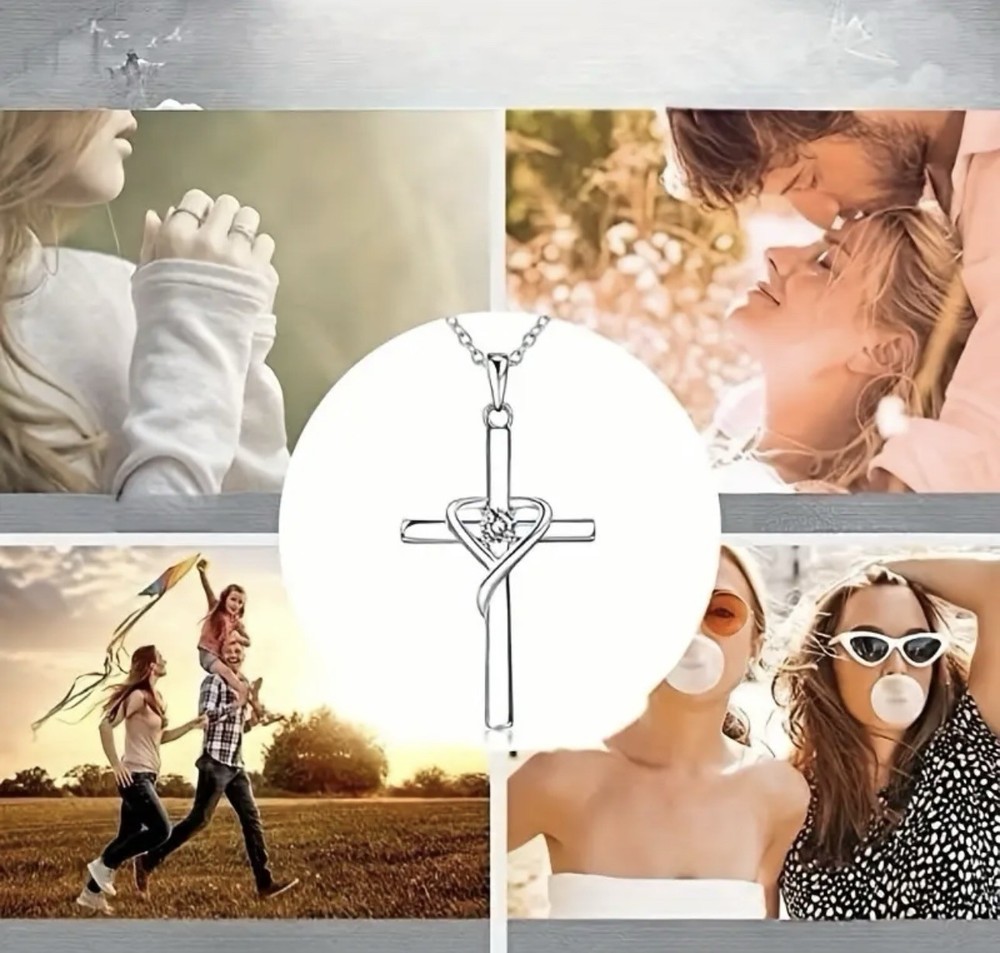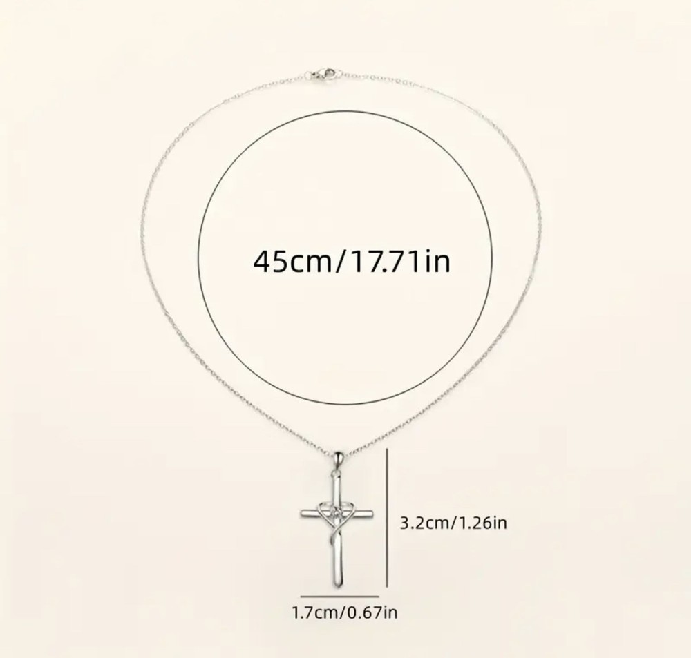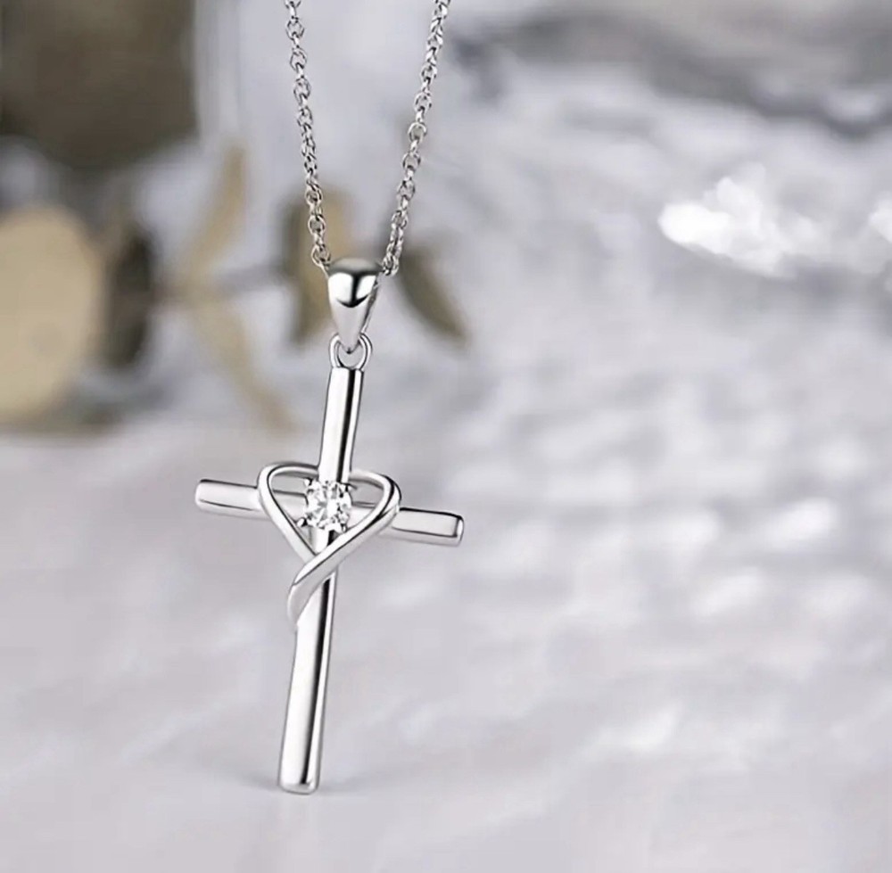 Golden Cross Necklace with Heart Crystal Christian Faith Jewelry
