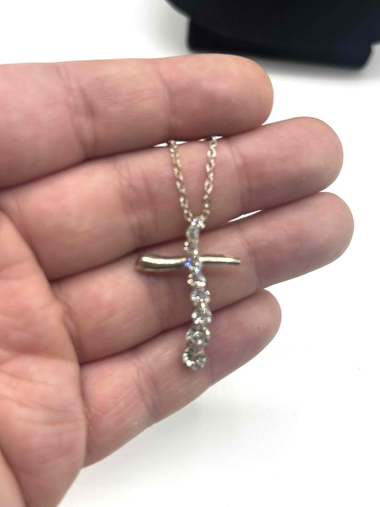 Necklace Length: 18 in Era: Undated Occasion: Anniversary, Christmas, Engagement, Mother's Day, Valentine's Day Type: Necklace Main Stone Creation: Unknown Country/Region of Manufacture: Unknown Secondary Stone: No Stone Main Stone Width: 1 mm UPC: Does not apply Metal Purity: Unknown Main Stone Color: White Main Stone Treatment: Unknown Color: Silver Base Metal: Stainless Steel Brand: Unbranded Main Stone Shape: Round gtin13: Does not apply Customized: No Style: Pendant Material: Rhinestone Metal: Silver Pendant Shape: Cross Theme: Inspirational, Religious Number of Gemstones: 11