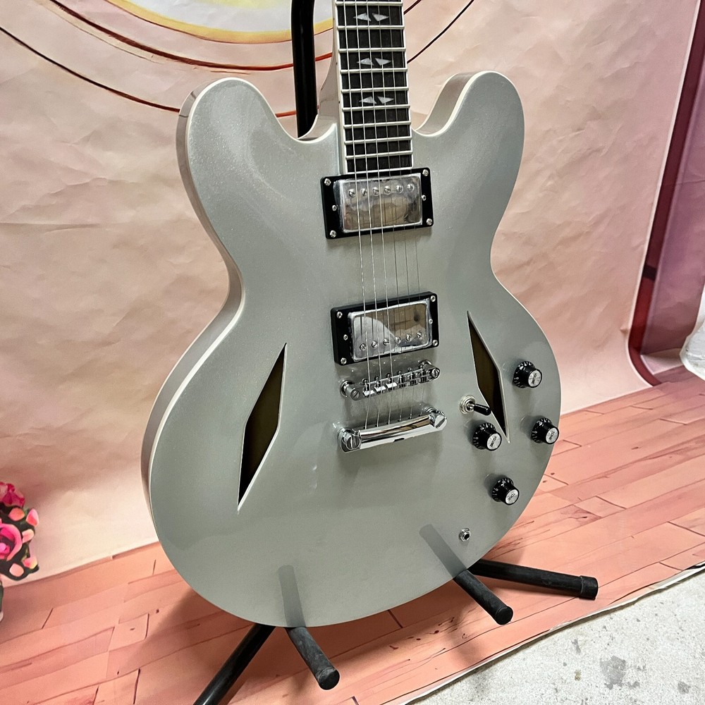 Silver DG-335 Semi-Hollow Electric Guitar with HH Pickups Free US Shipping