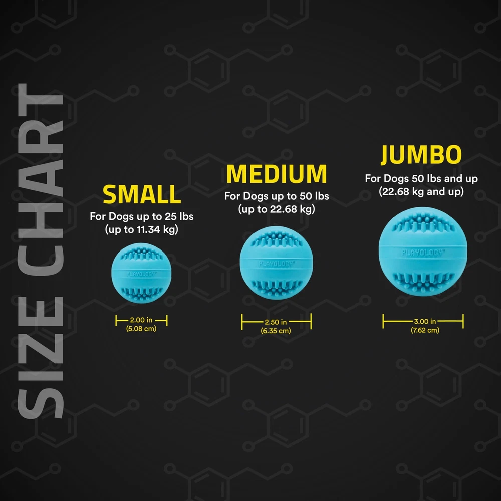 MEET THE SENIOR DENTAL CHEW BALL: Made with a soft rubber material designed for aging teeth and gums, and embedded with all-natural Peanut Butter scent, this is the toy your senior pup has been waiting for. This interactive chew toy is designed with deep grooves to help clean your pup's teeth and gums while they play and chew. The Jumbo size is ideal for dogs 50 lbs and up. ENCAPSISCENT TECHNOLOGY: A dog’s sense of smell is 10,000x more powerful than a human’s. Dogs experience the world through scent, so we make interactive dog toys with the all-natural scents they love. Every dog toy is embedded with an all-natural scent at the microscopic level. The fresh bursts of scent that are released with each chew will keep your pup engaged 7x longer than unscented toys. EASY TO CLEAN: Dirt and sand trapped on the surface of a toy can grind down your pup’s teeth, that's why we make all our rubber dog toys easy to clean. With our Encapsiscent Technology, the all-natural scent is embedded throughout the material of each toy, so no need to worry about washing away the scent your pup loves. Just rinse with warm water to clean and pat dry. FOUNDED BY DOG LOVERS: When we developed , we looked at the science behind what made dogs enjoy their toys. We reviewed the safety standards used to protect human children and designed our dog toys utilizing those standards. Each toy is tested to meet ASTM guidelines for safety and the CPSIA standards for leads, phthalates, and other toxins deemed hazardous. Everyone at remains committed to designing and developing the best, safest and healthiest toys we possibly can HAPPINESS : At , we're more than just toys; we're about making tails wag and ending the toy graveyard blues. So, if you encounter any issues or if your furry friend isn't overjoyed with our products for any reason, we're here to save the day. Your dog's happiness is our !