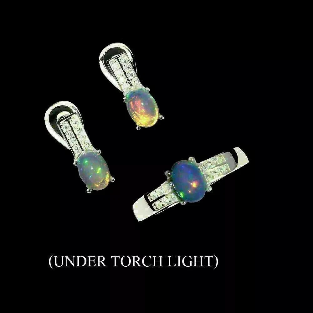 Silver Earring Ring Opal Genuine Mined Gems Solid Sterling Q 1/2 US 8.5